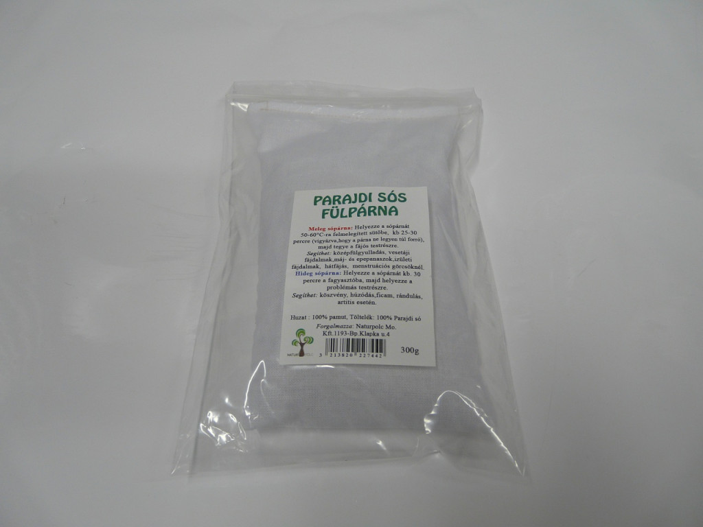 A felmelegített sópárna képes enyhíteni a fülfájást. 300g parajdi só 100% pamut huzatban. A párna akár radiátoron, sütőben avgy alacsony fokozaton edényben is melegíthető. Helyezzük a fájó fülre és fektessük rá a beteget. A meleg só párolgása jó hatással van az asztmás vagy egyéb légúti megbetegedésben szenvedőkre is.