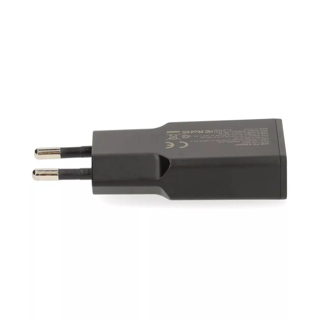 Adapter, 1xUSB-A, 1xUSB-C, 5V/9V/12V/15V/20V, 3A, 30W, PD, Black