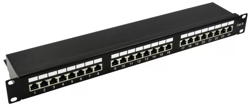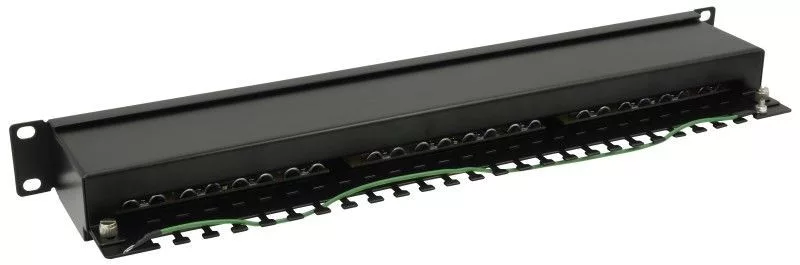 Nestron 19" patch panel; 24 port; Cat6; árnyékolt; tehermentesítővel; dual IDC (Krone/110)