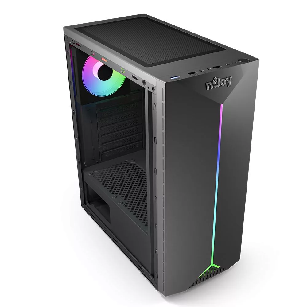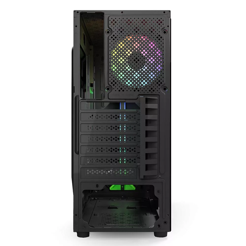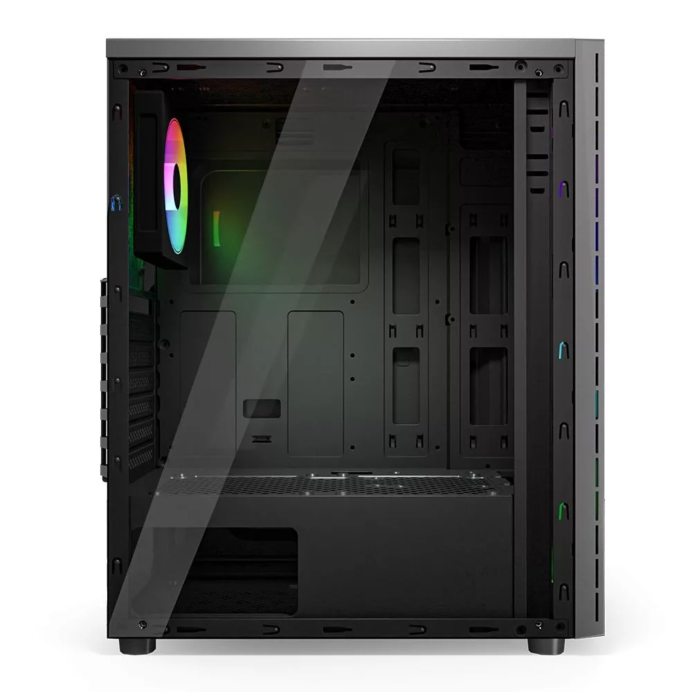 ATX, Black, 1x3,5", 1x2,5", 2xUSB2.0, 1xUSB3.0, Audio, Táp nélkül, 350x180x410mm, Ventilátor:1x12cm, Window, RGB, Gamer