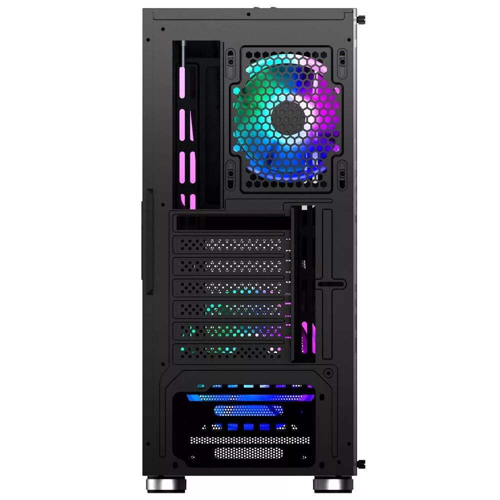 ATX, Black, 2x3,5", 2x2,5", 1xUSB2.0, 2xUSB3.0, Audio, Táp nélkül, 400x200x440mm, Ventilátor:1x12cm, 1x14cm, Tempered glass window, RGB, Gamer