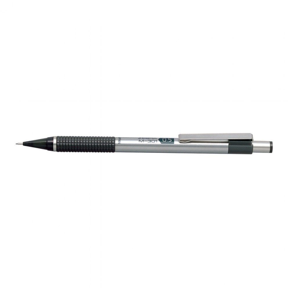 Az M-301 mechanikus ceruza az F-301 golyóstoll párja, rendkívüli népszerűségnek örvend, amit a rendhagyó forma, a rozsdamentes acél tolltest, a bordázott markolat és mindezek együttes hatása meg is magyaráz. A fém nyomógomb alatt beépített radír található. Markolat színe fekete. Hegyvastagság: 0,5mm. 10db/gyűjtő, 1000db/karton. Mechanikus ceruza, pixirón. Katalóguskód: 812