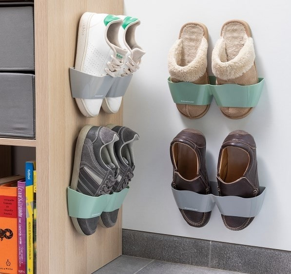 Különböző felületekre helyezhetőSzeretnéd, ha végre nem hevernének szerteszét a cipők a lakásban? Szeretnéd a cipőidet helytakarékosan tárolni? Az öntapadós cipőtartó a legkényelmesebb módja cipőid tárolására és rendszerezésére. A tartók egyszerűen ragaszthatóak fel a falra, ajtóra vagy szekrényre. Nincs szükség sem szerszámra, sem összeszerelésre.