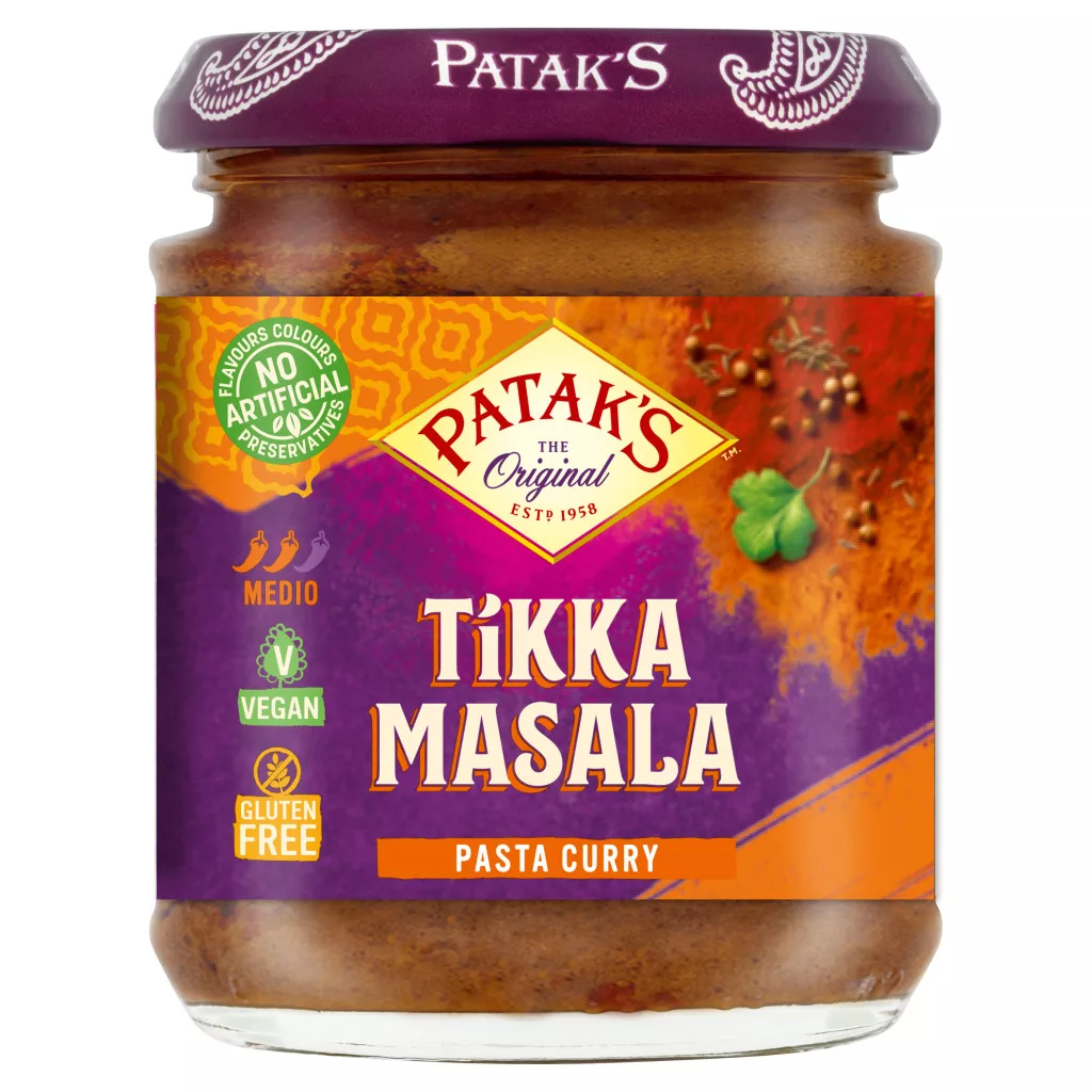 Indiai curry paszta. Vegán, gluténmentes termék. Nem tartalmaz mesterséges színezéket, ízfokozót és tartósítószert. Főzést igényel. Összetevők: Víz, Őrölt fűszerek (19%) [kurkuma, paprika (4%), kömény (3%), koriander (3%), fűszerek], Repceolaj, Só, Kukoricaliszt, Savak (ecetsav, citromsav), Tamarind, Fokhagymapor, Köménymag, Paprika kivonat, Szárított görögszéna, Szárított koriander. Földimogyorót, dióféléket és mustárt tartalmazhat! Származási hely: Egyesült Királyság. Tárolás: Száraz, hűvös helyen. Felbontás után hűtőben tárolja, 6 héten belül fogyassza el (a jelzett szavatossági időn belül). Felhasználási javaslat: Tikka curry csirke: keverjünk össze egy 1 üveg pasztát natúr joghurttal. A kockára vágott csirkét pácoljuk be a keverékkel és hűtőben hagyjuk pácolódni. Teltebb íz kedvéért egy éjszakán át pácoljuk. Grillen, serpenyőben 15 percig süssük, időnként megforgatva, amíg a csirke meg nem sül.