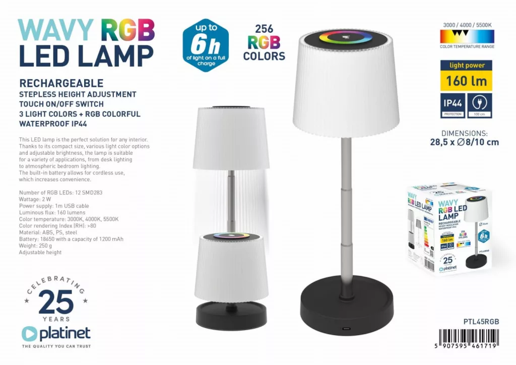 Ez a kompakt és stílusos LED lámpa tökéletes választás íróasztalhoz és éjjeli fénynek egyaránt. Színváltó funkciójának és sima magasságállításának köszönhetően bármilyen helyzetben kényelmes megvilágítást biztosít.