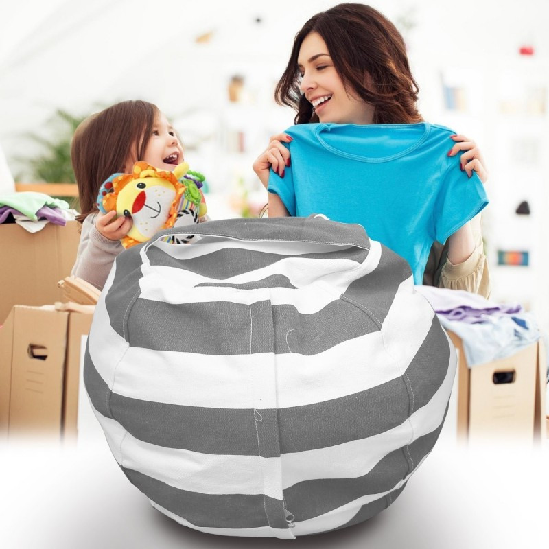 Kösd össze a kellemest a hasznossal! Tedd a plüssöket ebbe a tároló babzsákba, amibe elrejtheted a játékokat és gyerekfotelként is használhatjátok.