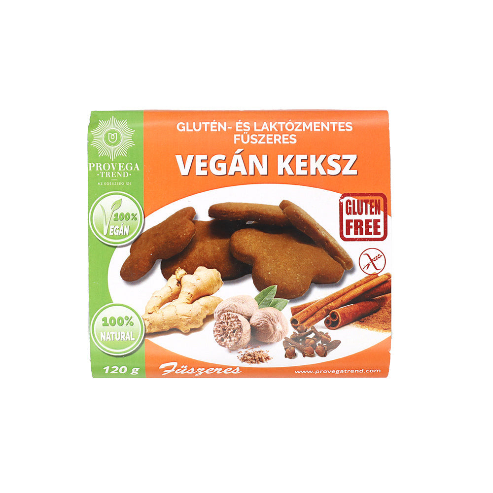 Gyömbérrel, szerecsendióval, fahéjjal és szegfűszeggel ízesített, kizárólag növényi eredetű alapanyagokból készült, élelmi rostokkal dúsított, élesztő, tartósítószer, és adalékanyag mentes, kókusz cukorral édesített, laktóz- és gluténmentes vegán keksz.Összetevők:rizsliszt, csicseriborsó liszt, kókuszcukor ( GI 35%), kókuszolaj, víz, fűszerek (gyömbér, szerecsendió, szegfűszeg, fahéj), szódabikarbóna, sütőpor.Átlagos tápérték 100g termékben:Energia: 2016 kJ | 482 kcal; zsír: 20,8 g (ebből telített zsírsav 6,5 g); szénhidrát 64,5 g (ebből cukor 3,4 g); rost 5,4 g; fehérje 6 g; só 0 g Allergének: diófélék, földimogyoró, szezámmag