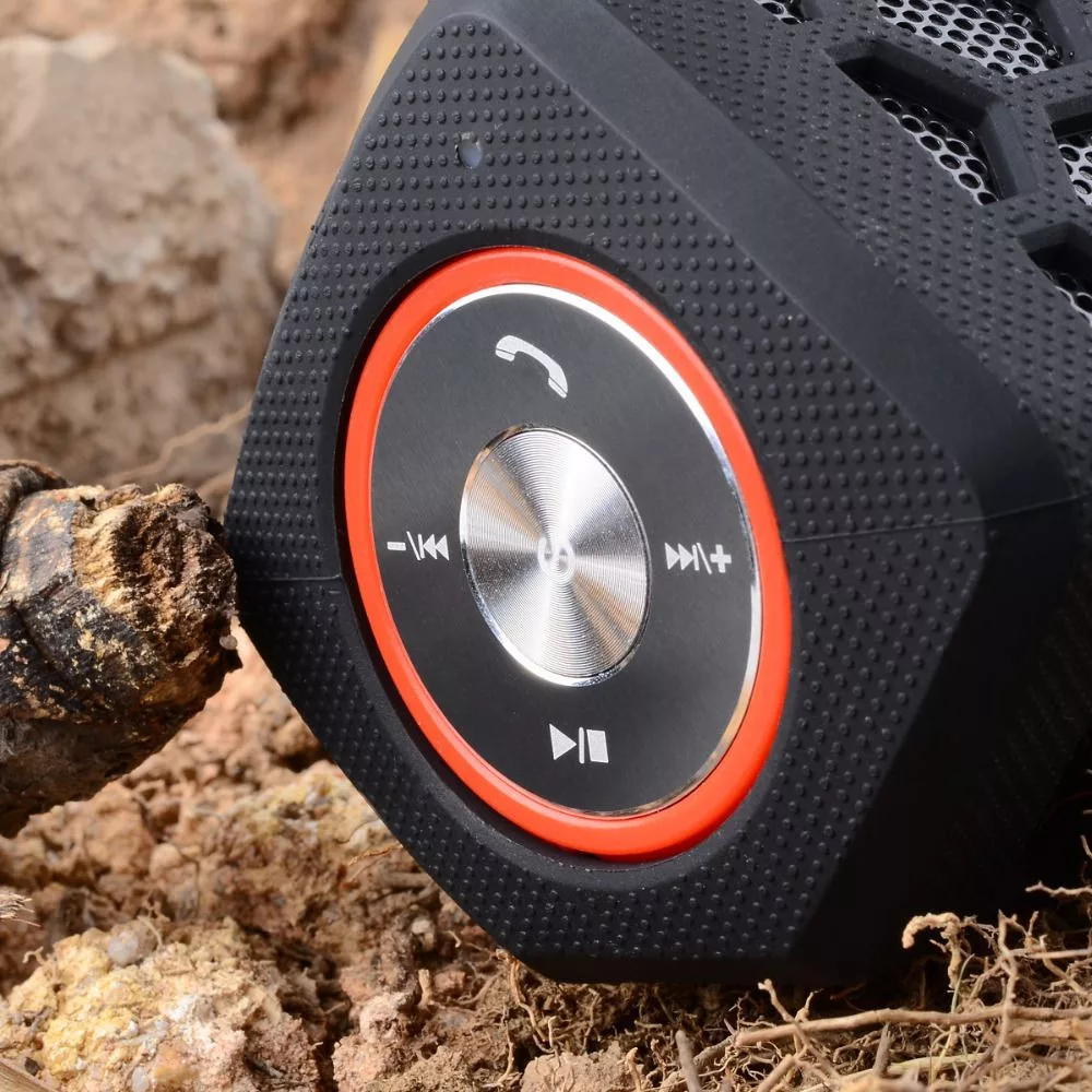 A Loudbox Speaker minőségi anyagokból készült, ezt már a súlyán is érezheted. Az elegáns grafitszürke, perforált sejtmintás, masszív fém ház egy szépen kidolgozott gumírozott csúszásgátló, és ütéscsillapító bevonatot kapott. Ennek köszönhetően gyakorlatilag bárhová lerakhatod, nem csúszik le a motorháztetőről, és kövekről, beton felületekről sem.