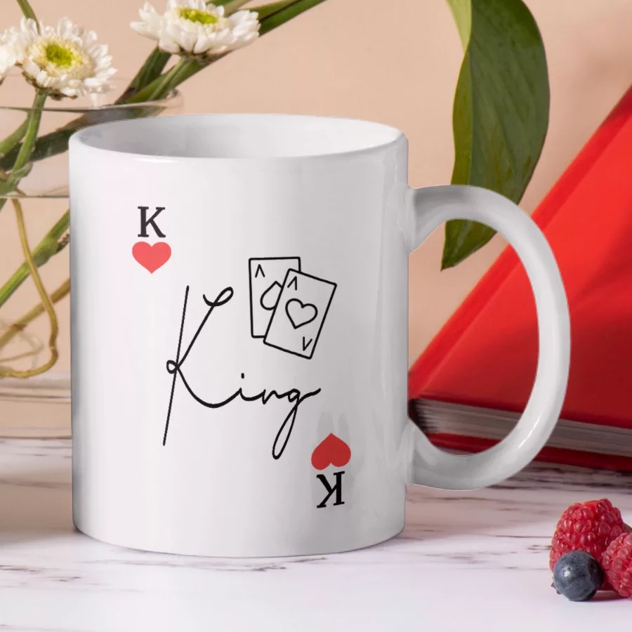 Queen és King kártyamintás páros bögreBemutatjuk nektek a saját gyártású bögréinket!Rengeteg egyedi minta közül választhatod ki azt, amelyik a legjobban illik hozzád, vagy ahhoz a személyhez, akit meg szeretnél ajándékozni!De tényleg! Annyira sok ötletünk van, hogy bátran állítjuk azt, hogy biztosan megtalálod a tökéletes képpel és szöveggel ellátott bögrét!A kerámia bögrék 300 ml űrtartalommal rendelkeznek, mosogatógépben is moshatók, ráadásul mikrózhatók is! Sőt az egyik legjobb dolog bennük az, hogy két oldali nyomattal láttuk el őket, így a bögre mindkét oldalán láthatod majd a mintát!Csak tudj majd választani közülük! De ér egyszerre többfélére is beruházni! Hisz tudjuk jól, hogy bögréből sosem elég!Minőségi kivitelezés, dizájnos megjelenés jellemezi az összes egyedi tárgyunkat!Űrtartalom: 300 mlAnyag: KerámiaMosogatógépben moshatóMikrózhatóKét oldali nyomat. A nyomat a bögre mindkét oldalán látható.