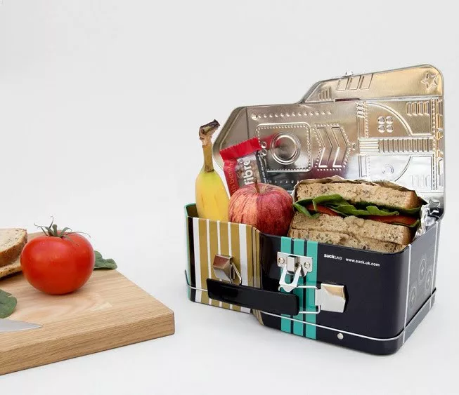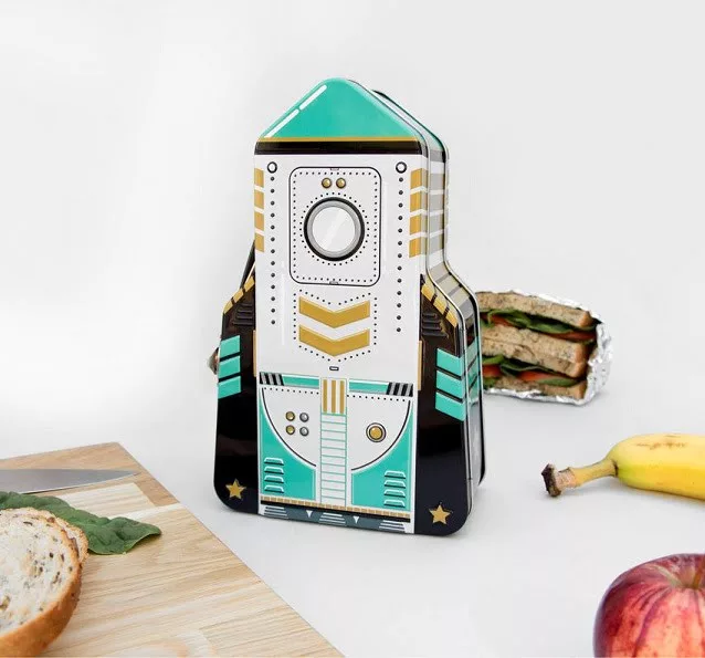 Rakéta formájú uzsonnás doboz.