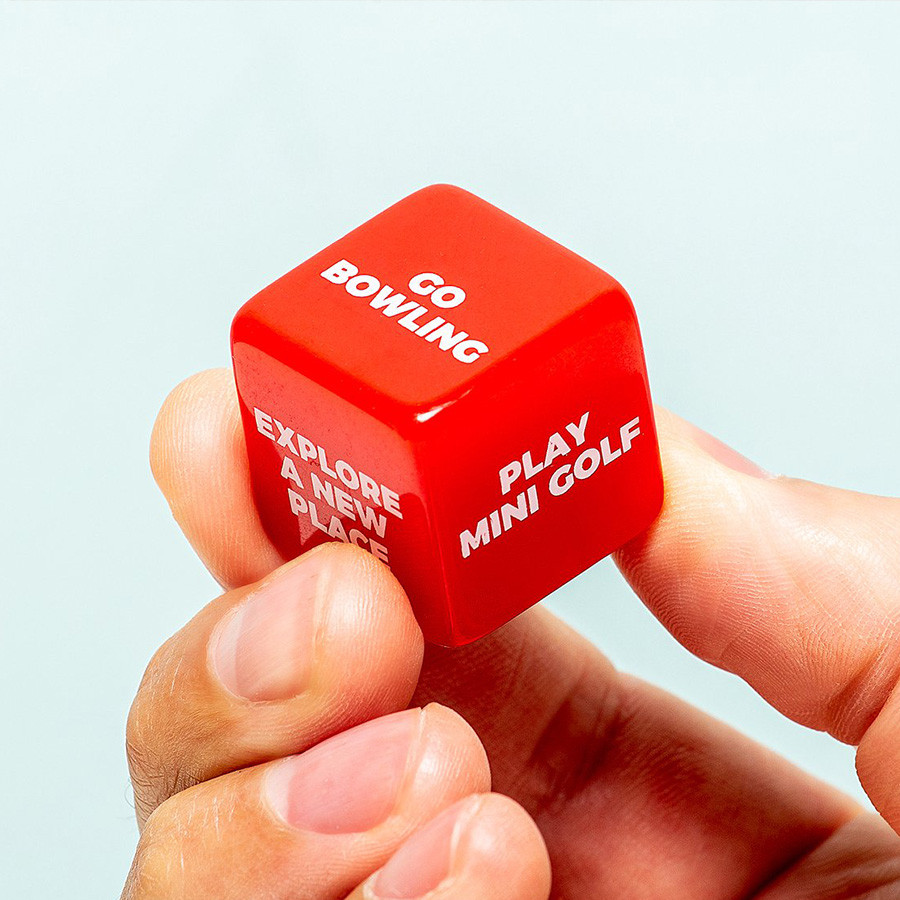 Nem tudjátok, hogy mivel töltsétek a hétvégéteket a pároddal, vagy az unalmas szerda estét? Ez a kocka segít nektek eldönteni nektek! Csak dobjatok vele, és hagyjátok, hogy ő szervezze meg a programot nektek!