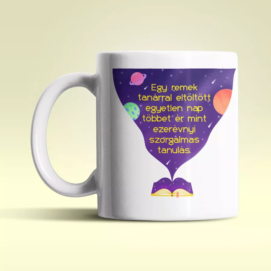 Remek tanár fehér bögre.Bemutatjuk nektek a saját gyártású bögréinket!Rengeteg egyedi minta közül választhatod ki azt, amelyik a legjobban illik hozzád, vagy ahhoz a személyhez, akit meg szeretnél ajándékozni!De tényleg! Annyira sok ötletünk van, hogy bátran állítjuk azt, hogy biztosan megtalálod a tökéletes képpel és szöveggel ellátott bögrét!A kerámia bögrék 300 ml űrtartalommal rendelkeznek, mosogatógépben is moshatók, ráadásul mikrózhatók is! Sőt az egyik legjobb dolog bennük az, hogy két oldali nyomattal láttuk el őket, így a bögre mindkét oldalán láthatod majd a mintát!Csak tudj majd választani közülük! De ér egyszerre többfélére is beruházni! Hisz tudjuk jól, hogy bögréből sosem elég!Minőségi kivitelezés, dizájnos megjelenés jellemezi az összes egyedi tárgyunkat!Űrtartalom: 300 mlAnyag: KerámiaMosogatógépben moshatóMikrózhatóKét oldali nyomat. A nyomat a bögre mindkét oldalán látható.