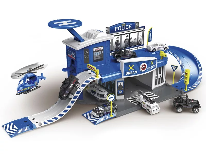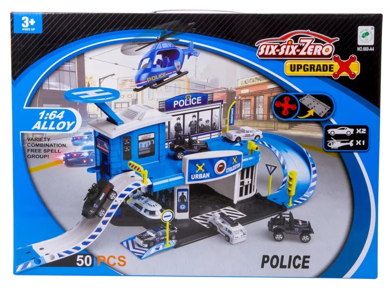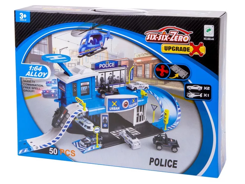 Rendőrségi parkolóház és helikopter leszálló 2 db kisautóval