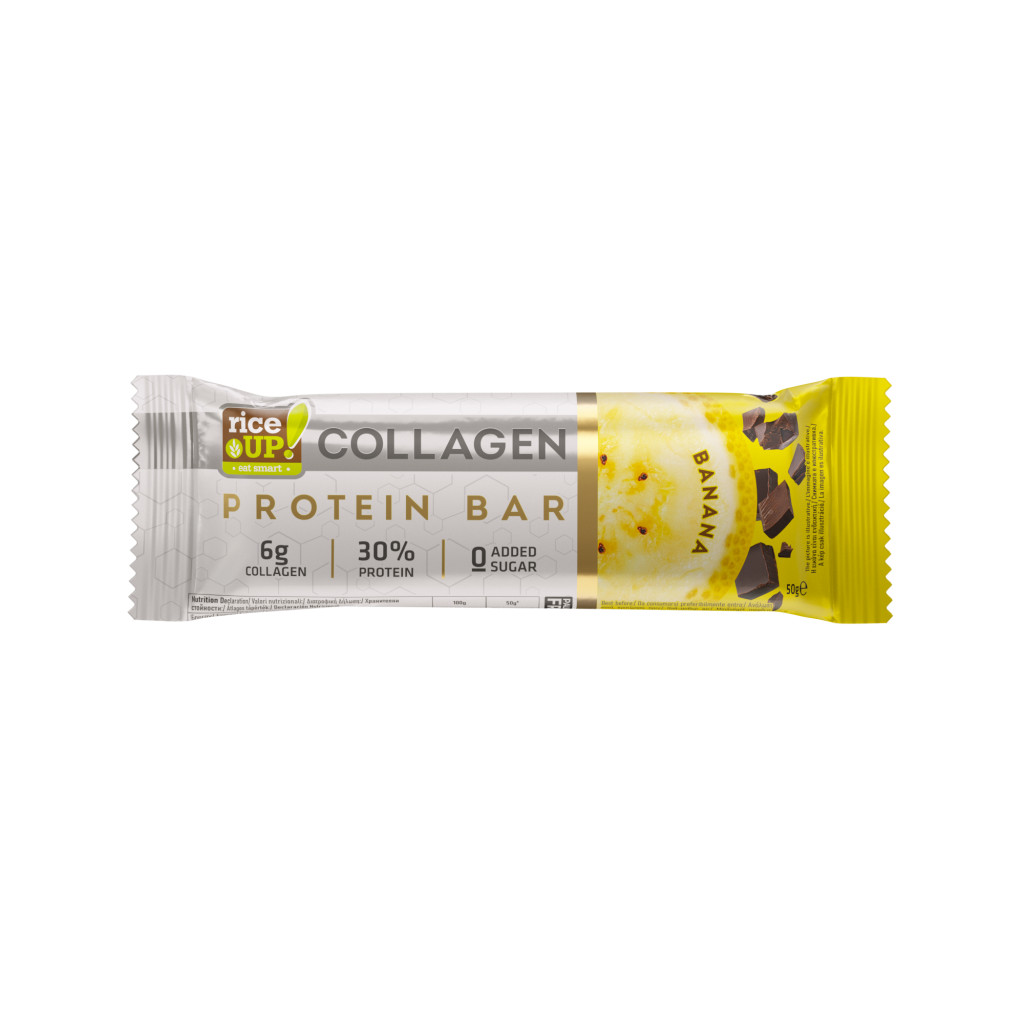 Kollagénes fehérje szelet Banános ízesítésű hozzáadott cukor nélkül.