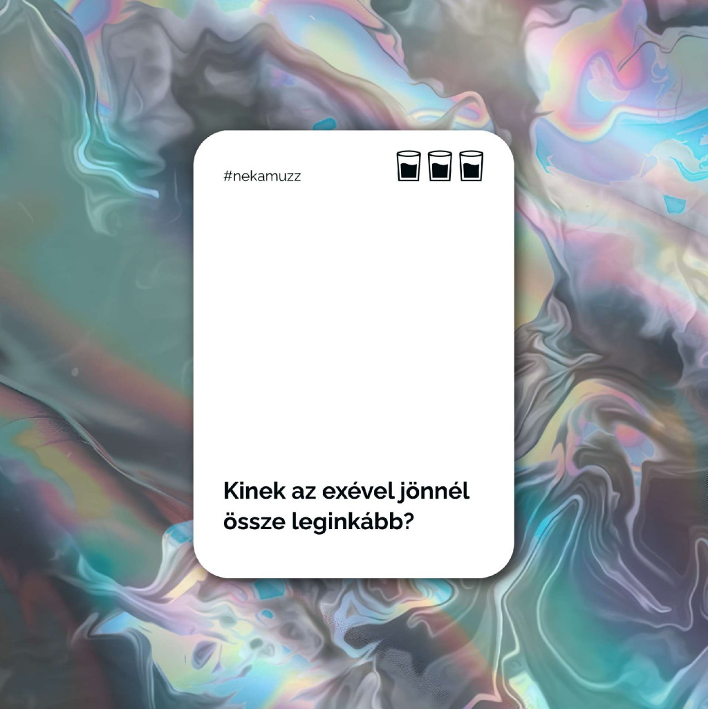 A játék egyszerű. Keverjétek meg a paklit és tegyétek középre! Majd egymás után húzzátok fel a lapokat és teljesítsétek őket! A legbátrabb kezd.A pakliban 3+1 féle kártyát találtok:#nekamuzz (20 db)A fehér kártyák kínos kérdések elé állítanak. Te döntesz: megválaszolod, vagy annyi shotot iszol, ahány a lapon szerepel.#úgysemered (20 db)Vagy mégis? A fekete kártyák gonosz utasításokat adnak. Két választásod van: Engedelmeskedsz, amivel könnyen magadra haragíthatod a játékosokat, vagy ellenállsz és annyi shotot iszol, ahány a lapon szerepel.#kireszavazol? (20 db)A türkiz kártyák felolvasása után nincssok időtök a gondolkodásra. Egy gyors visszaszámlálás (3…2…1) után mindenkinek rá kell mutatnia arra, akire szerinte a legjellemzőbb az állítás. Aki a legtöbb szavazatot kapja, az iszik egyet.#vészhelyzet (7 db)Ezek a kártyák garantáltan felrázzák a hangulatot. A veszély elől csak a feladat végrehajtásával tudtok megmenekülni. Azonban nem mindenki! Aki utolsónak végez, vagy elsőként elbukik, annak a büntetése 5 shot.