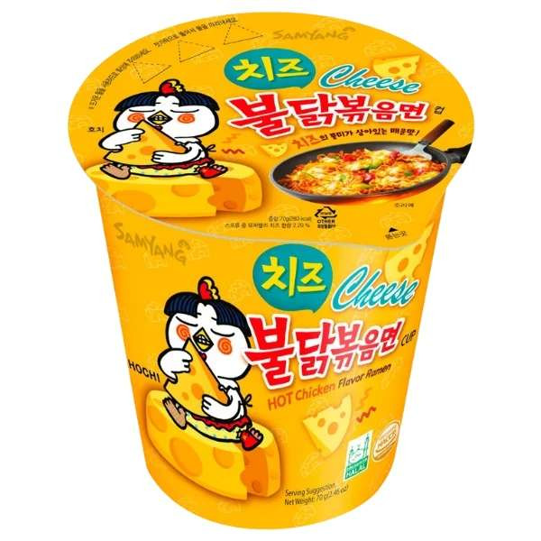 Samyang Hot Chicken Cheese Ramen instant csípős-sajtos ramen pohárban