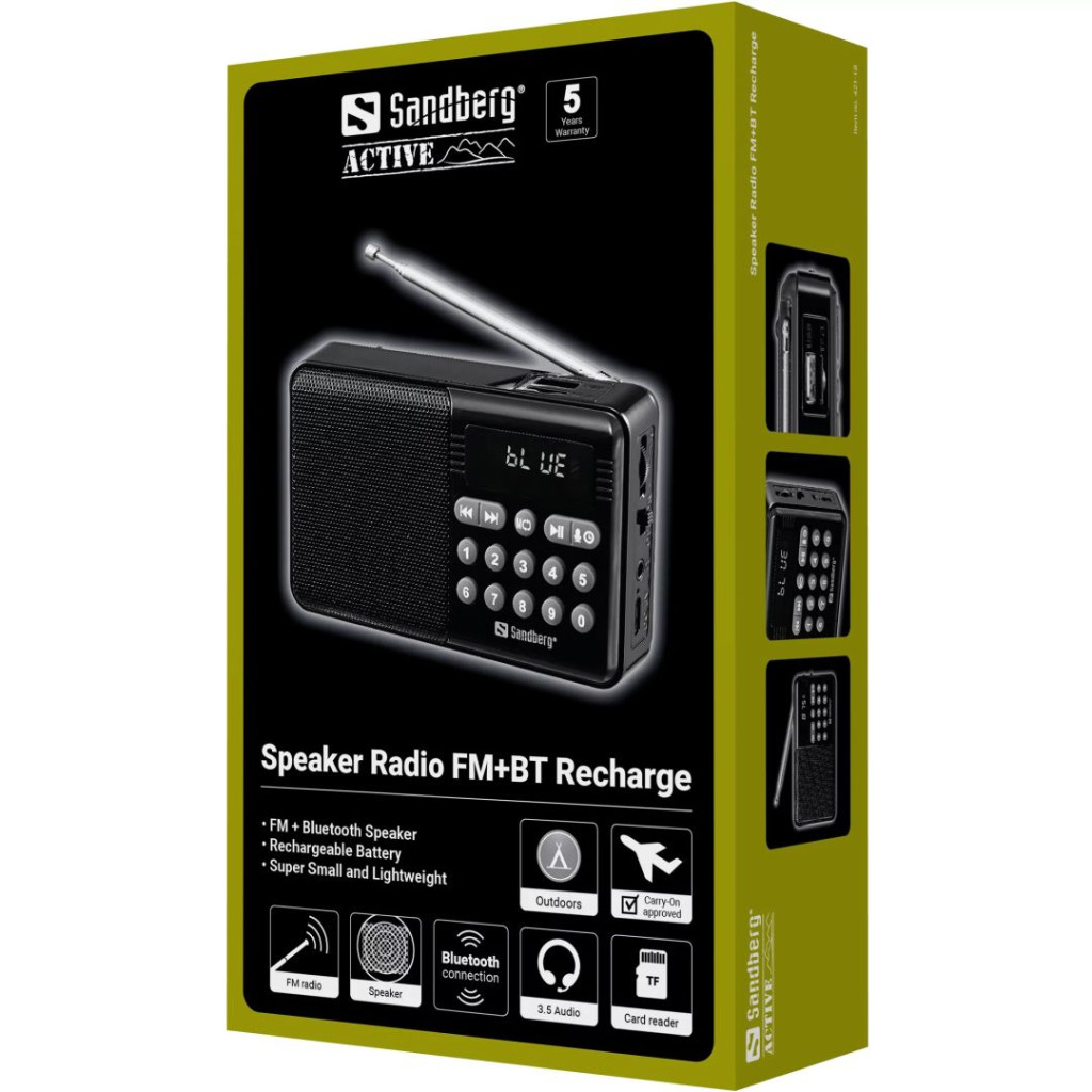 Sandberg Sandberg Speaker Radio FM+BT Recharge, 15 h, 5 W, Black