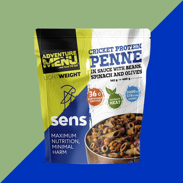 Sens Adventure Menu Tücsökfehérje penne mártásban babbal spenóttal és olajbogyóval - készétel