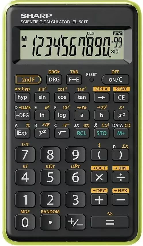 Tudományos számológép különösen alkalmas középiskolás diákok számára. A Sharp EL-501TBGR (SH-EL501TBGR) egysoros kijelzővel rendelkezik, amely 10 számjegyet képes megjeleníteni. 146 matematikai, statisztikai és trigonometrikus funkcióval rendelkezik. Az áramellátást klasszikus elemek biztosítják.