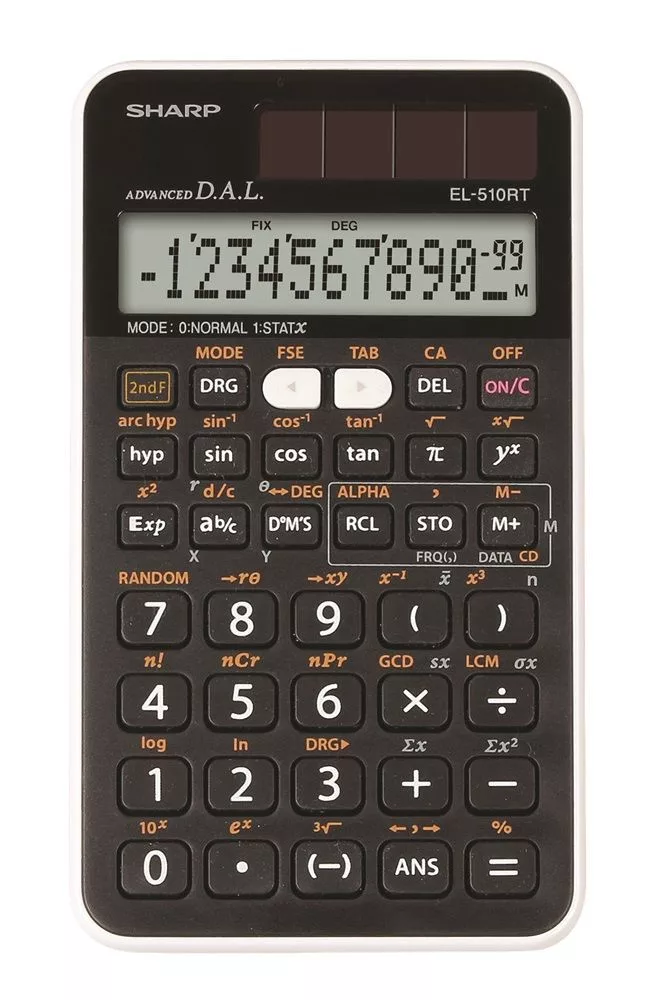 Kijelző: 1 soros, 10+2 (mantissza) számjegyes LCD - Tápellátás: napelem és LR54 elem - Automatikus kikapcsolás: igen - Tartós, puha gumírozott gombok - Csúsztatható védőtok - Méretek: 135 x 75 x 10 mm - Tömeg: 66 g - Szín: fekete-fehér - Nem programozható, érettségin használható tudományos számológép Funkciók: - Beépített funkciók száma: 169 - Beviteli rendszer: D.A.L. - egyenletszerű - 1/x, x2, ?, % - Dedikált Pi gomb - Legnagyobb közös osztó - GCD, Legkisebb közös többszörös - LCM - Számítás komplex számokkal Memória: - Többsoros memória előhívás - Utolsó eredmény visszahívás (ANS) - Változtatható memóriák száma: 5 Megjelenítési formák: - Ezres elválasztó megjelenítés Statisztika: - 1-változós statisztika - Véletlenszám generátor Trigonometrikus funkciók: - Deg, Rad, Grad módok - Sin, Cos, Tan, és inverzei - Hiperbolikus függvények - Szexagezimális (60-as) számrendszer és decimális számrendszer közötti konverzió