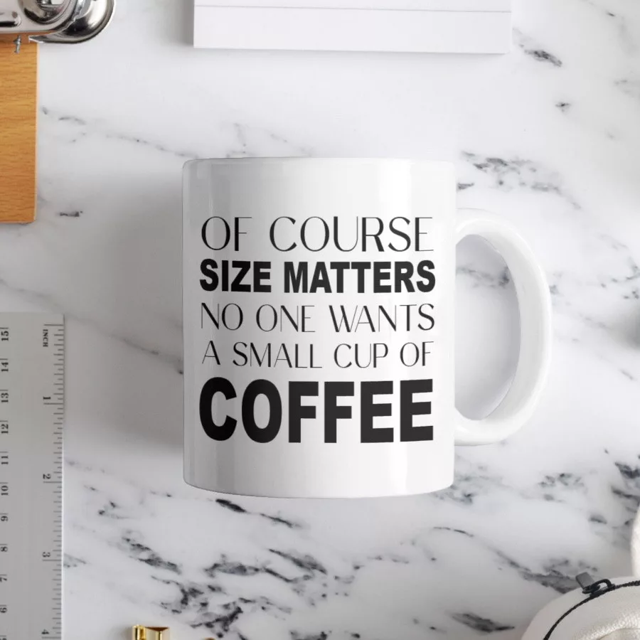Size matters fehér bögreBemutatjuk nektek a saját gyártású bögréinket!Rengeteg egyedi minta közül választhatod ki azt, amelyik a legjobban illik hozzád, vagy ahhoz a személyhez, akit meg szeretnél ajándékozni!De tényleg! Annyira sok ötletünk van, hogy bátran állítjuk azt, hogy biztosan megtalálod a tökéletes képpel és szöveggel ellátott bögrét!A kerámia bögrék 300 ml űrtartalommal rendelkeznek, mosogatógépben is moshatók, ráadásul mikrózhatók is! Sőt az egyik legjobb dolog bennük az, hogy két oldali nyomattal láttuk el őket, így a bögre mindkét oldalán láthatod majd a mintát!Csak tudj majd választani közülük! De ér egyszerre többfélére is beruházni! Hisz tudjuk jól, hogy bögréből sosem elég!Minőségi kivitelezés, dizájnos megjelenés jellemezi az összes egyedi tárgyunkat!Űrtartalom: 300 mlAnyag: KerámiaMosogatógépben moshatóMikrózhatóKét oldali nyomat. A nyomat a bögre mindkét oldalán látható.