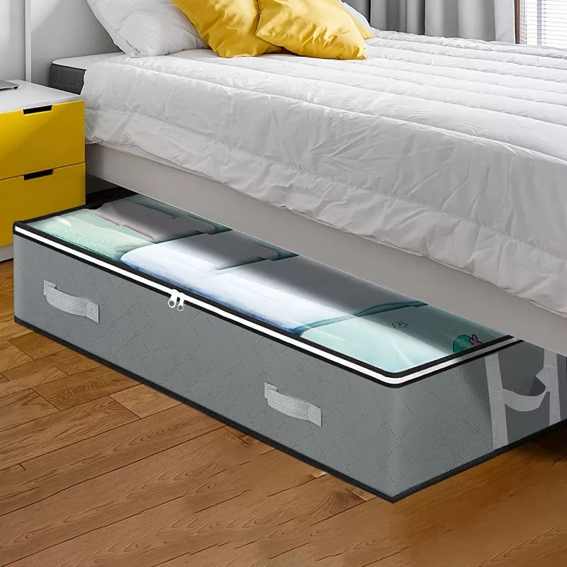 Képzeld el, hogy a szobád minden sarka rendezett és stílusos. A sokoldalú ágy alatti tároló megoldásunkkal ez könnyedén elérhető. Ez a praktikus szervező nemcsak helyet takarít meg, hanem segít rendet tartani otthonodban. Az ágy alatti tároló ideális választás, ha szeretnéd kihasználni a rendelkezésre álló teret, és elrejteni a szezonális ruhákat, cipőket vagy bármilyen ritkán használt tárgyat. A megerősített fogantyúkkal ellátott tároló könnyedén mozgatható, így bármikor hozzáférhetsz a benne tárolt dolgokhoz. A modern dizájn és a tartós anyagok kombinációja garantálja, hogy ez a tároló hosszú távon is hű társad lesz a rendrakásban.
