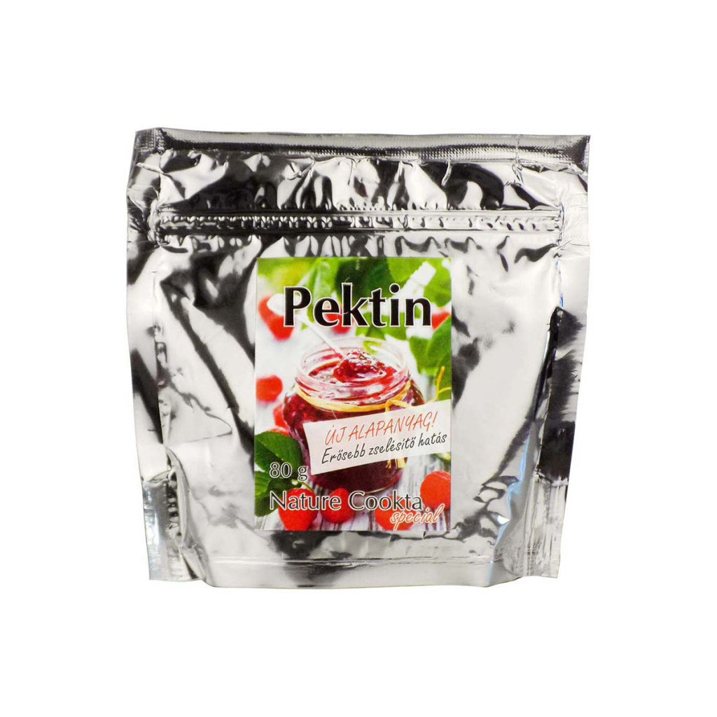 A Nature Cookta special Pektin növényi eredetű, természetes zselésítő konyhai alapanyag. Ajánlott a tökéletesen finom, megfelelő állagú lekvárok, dzsemek, zselék készítéséhez. Rövidebb főzési idővel kevesebb édesítő hozzáadása szükséges ételek készítésénél. Könnyedén zselészerűvé, kocsonyássá változtatja a folyékony halmazállapotú anyagokat. Hozzájárul ahhoz, hogy az elkészített finomságok még inkább meg tudják őrizni gyümölcsös ízvilágukat. A zselésítő anyag a dzsemek kihagyhatatlan összetevője, a tökéletes kenhetőségüket teszi lehetővé. Tartós pékárukhoz, tortabevonókhoz, könnyű desszertekhez, fagylaltokhoz is kitűnő. Felhasználásával bármilyen gyümölcsből készíthetünk igazán jó állagú lekvárt, ha citromsavval és valamilyen reform édesítővel, (például eritritollal) keverjük el. Felhasználásával bármilyen ízű és formájú gumicukrot alkothatunk. Felhasználása: Míg korábban 80 gramm Nature Cookta Special Pektin körülbelül 11-16 kilogramm gyümölcshöz volt elegendő, addig most akár 20-25 kg-hoz is elégséges.A felhasznált mennyiség függ személyes ízlésünktől, hogy milyen állagú finomságot is szeretnénk készíteni, valamint attól is, hogy milyen gyümölcs a nyersanyagunk hozzá.Összetevők: 100% citruspektinÁtlagos tápérték 100g termékben:Energia: 325 kcalZsír: 0,3 gAmelyből telített zsírok: 0,1 gSzénhidrát: 81,8 gAmelyből cukrok: 0 gFehérje: 0,3 gSó: 0 g