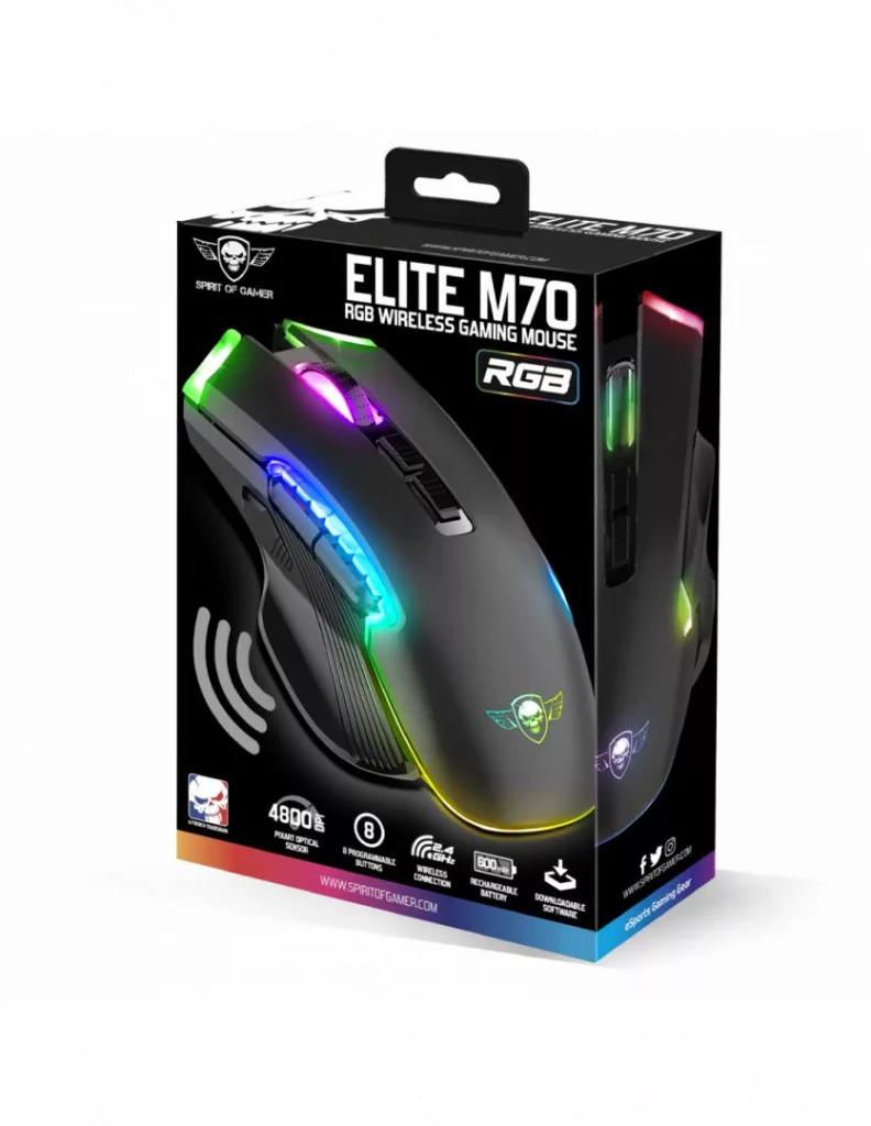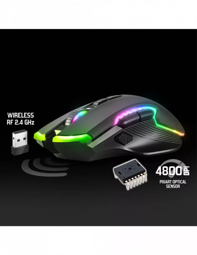 Vezeték nélküli, Wireless 2,4GHz, Optikai, 4800DPI, Black, Újratölthető, RGB, Gamer