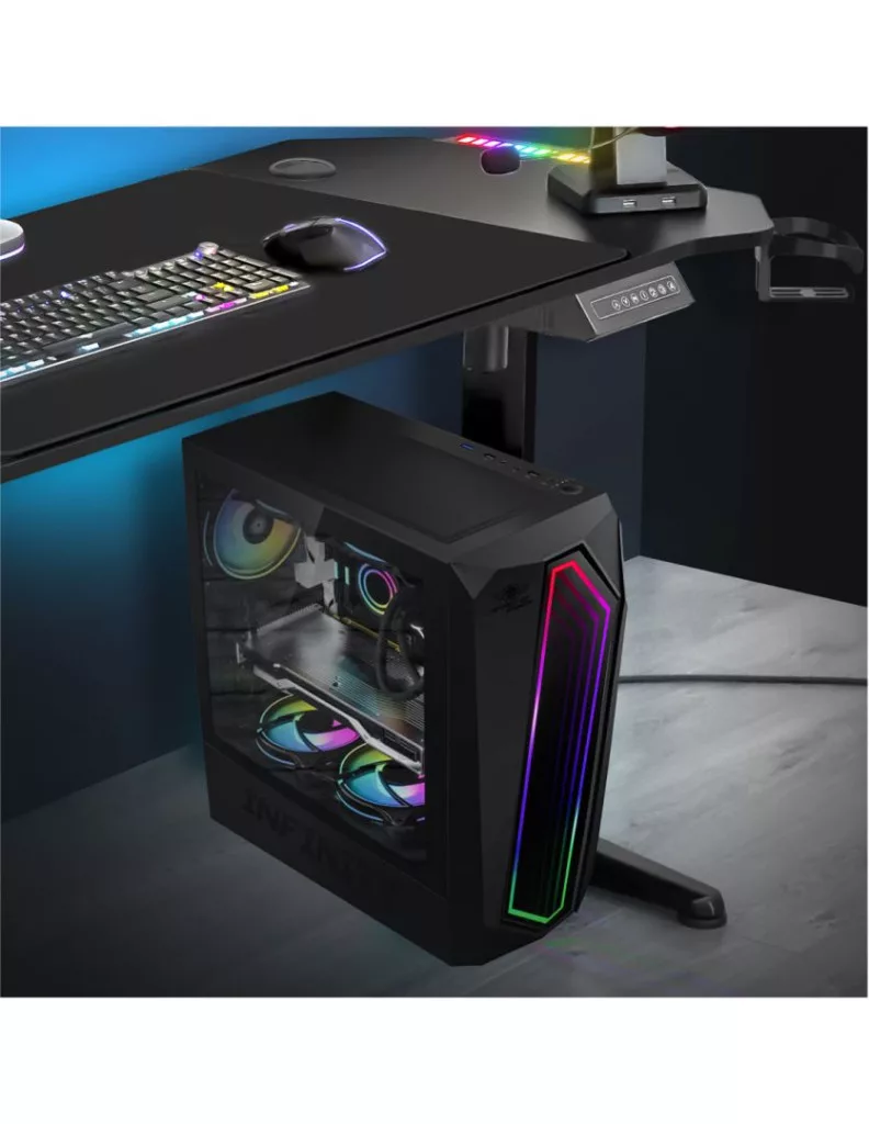 ATX, Black, 2x3,5", 3x2,5", 2xUSB2.0, 1xUSB3.0, Audio, Táp nélkül, 461x210x380mm, Ventilátor:2x12cm, Tempered glass window, RGB, Gamer