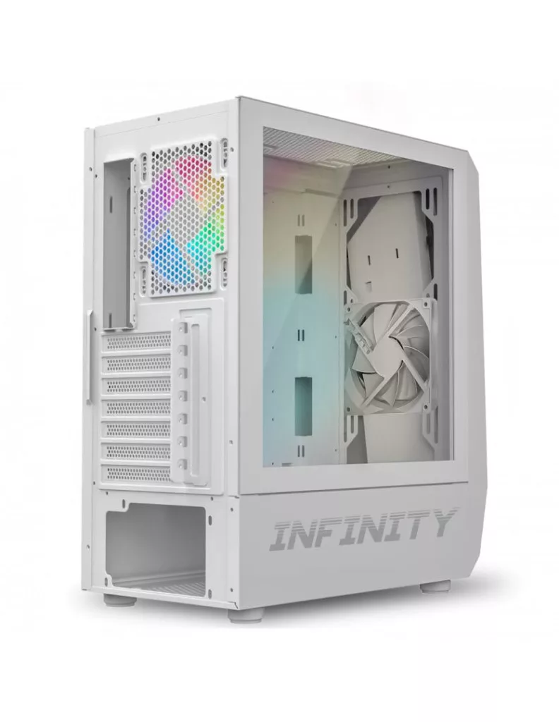 ATX, White, 2x3,5", 3x2,5", 2xUSB2.0, 1xUSB3.0, Audio, Táp nélkül, 461x210x380mm, Ventilátor:2x12cm, Tempered glass window, RGB, Gamer