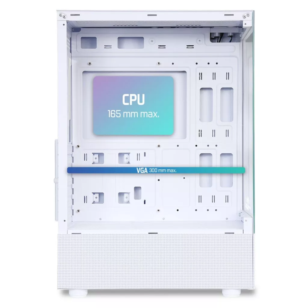 ATX, White, 1x3,5", 2x2,5", 2xUSB2.0, 1xUSB3.0, Audio, Táp nélkül, 400x269x531mm, Ventilátor:3x12cm, Window, RGB, Gamer
