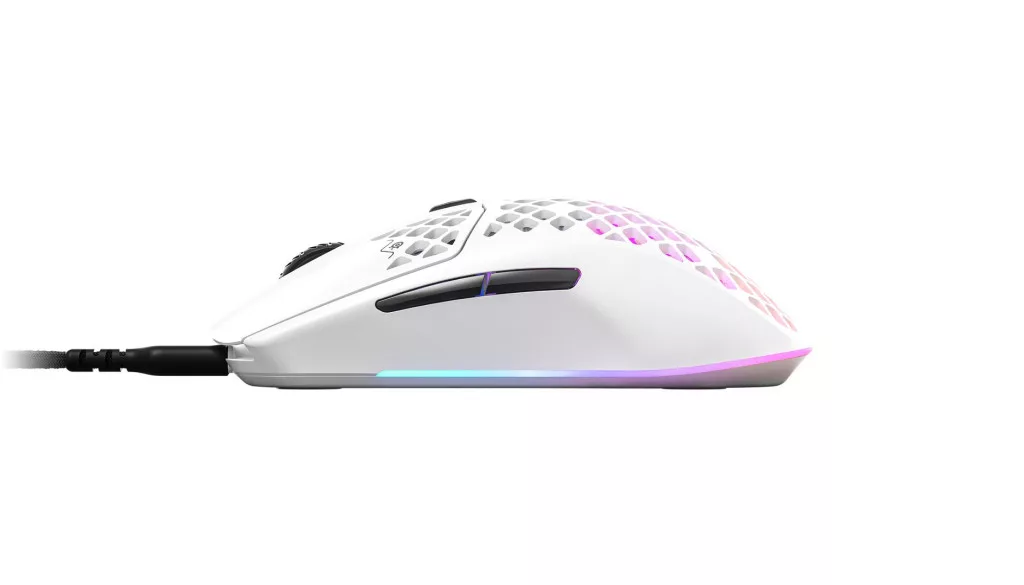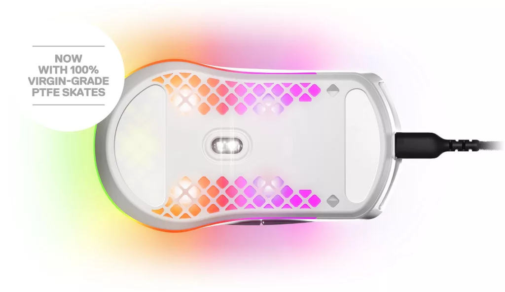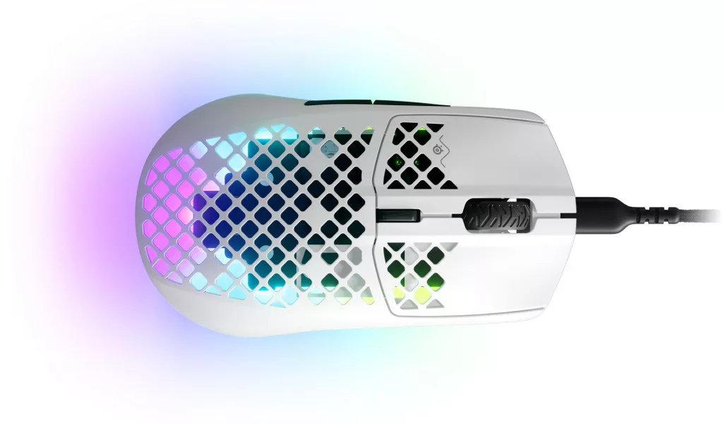 A SteelSeries Aerox 3 2022 Snow egy ultrakönnyű 59g-os gamer egér a pörgős játékokhoz. A vezetékes egér adatátvitelét egy USB-A-to USB-C kábel biztosítja.