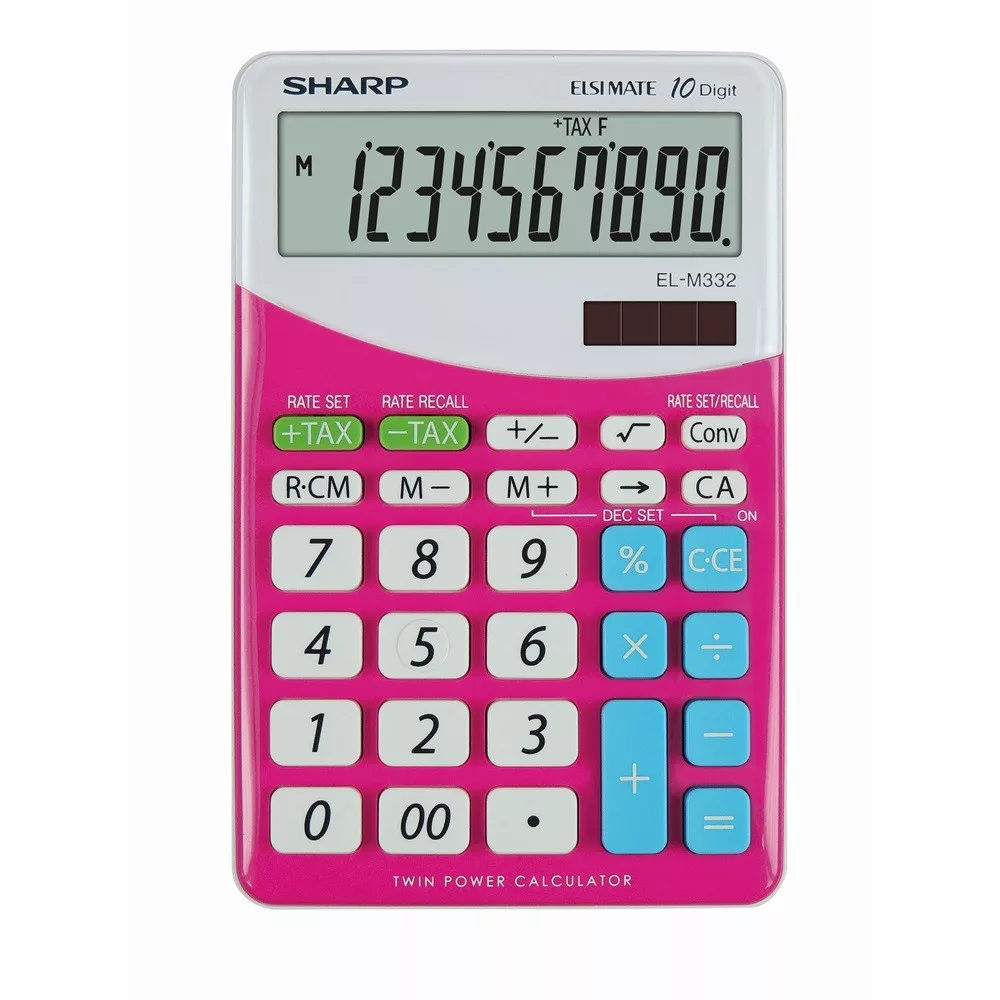 10 számjegyes, elem+napelem, dönthető kijelző, ÁFA számítás, egységek (pl. valuták) közti átváltás (3 egység között), javítógomb, "00", %, +/-, Rózsaszín, gyors adatbevitel Katalóguskód: 67505