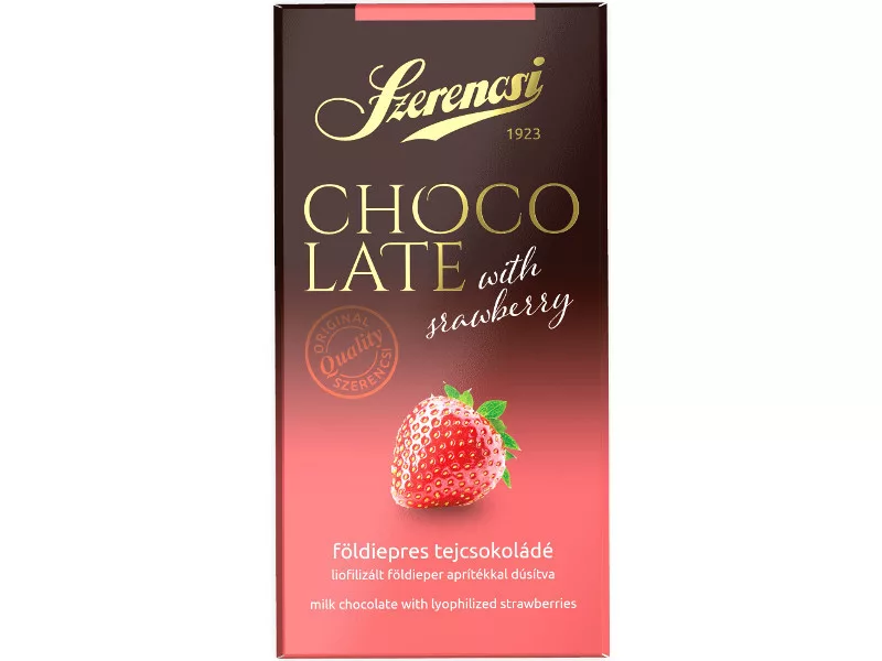 Egy finoman roppanó, keh nádzott tejcsokoládé tábla, amelybe ízletes eper darabok kerültek. A Szerencsi minőség garantálja a kiegyensúlyozott édességet, amelyben a gyümölcsös frissesség találkozik a krémes csokoládéval. Ideális választás ünnepi desszert helyett vagy egy gyors energia-utánpótlásként.