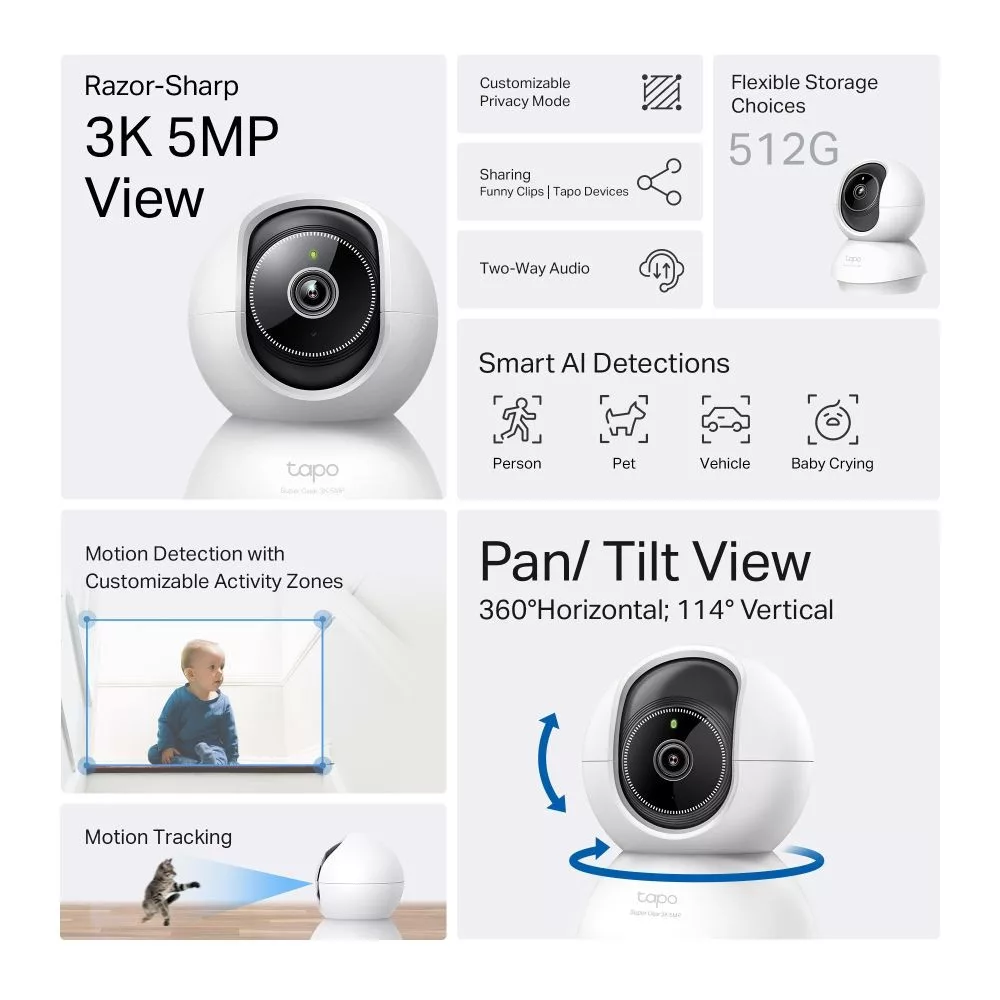 - Kiváló minőségű videofelvétel: Rögzítsen minden részletet kivételes tisztasággal 3K 5MP felbontásban.