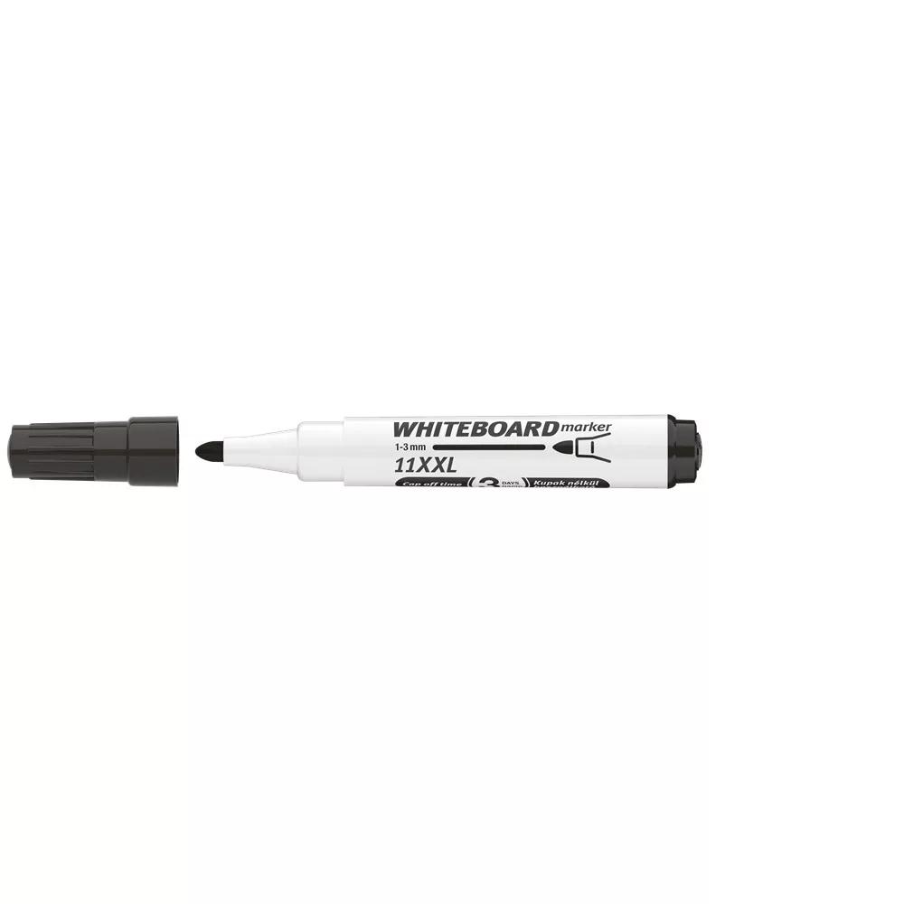 Fehér táblára való írásra, rajzolásra alkalmas marker."Cap-off" festékkel töltve, ezért néhány napig kupak nélkül sem szárad be. Az írás szárazon letörölhető. Megnövelt élettartam a nagyobb méretű testnek köszönhetően. Kerekített csúccsal .. Vonalvastagság: 3 mm. 10DB/DOBOZ Katalóguskód: 20189