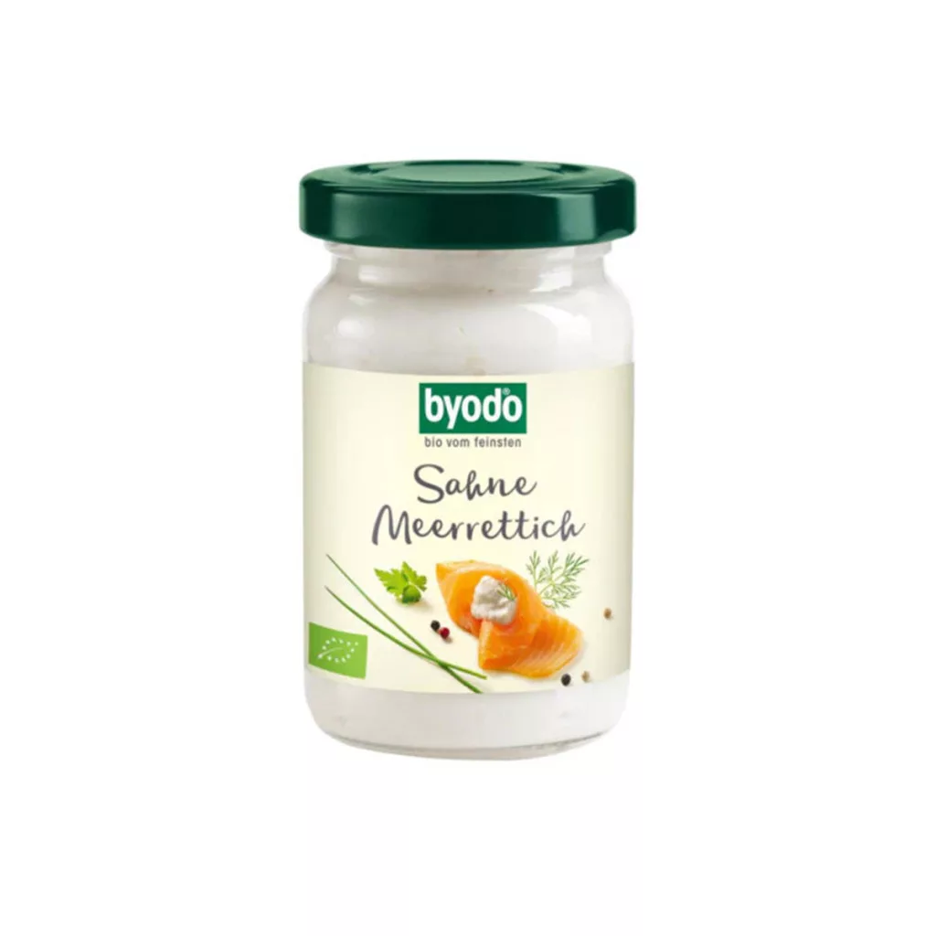 Minőségét megőrzi: 2025-10-15Könnyű, habos állag és krémes ízvilág – erről ismert a finom bio tejszínes tormánk. Frissen reszelt, bio gazdálkodásból származó tormagyökérből készül, amelyet gondosan válogatott összetevőkkel és egy extra adag tejszínnel kevernek össze, így alakul ki a kellemesen lágy csípősségű íz.Összetevők: Torma* (28%), napraforgóolaj*, tejszín (23%), brandy ecet, nádcukor*, víz, savótermék*, kukoricakeményítő*, citromlé*, sűrítőanyag: guargumi*, tengeri só *ellenőrzött ökológiai gazdálkodásbólEgyéb allergén információ: Tej, laktóz Szóját és szulfitot nyomokban tartalmazhat.Átlagos tápérték 100g termékben:Energia: 1344kJ/ 325 kcalZsír: 28g Amelyből telített zsírsavak: 3,9g Szénhidrát: 13g Amelyből cukrok: 9,5g Fehérje: 2,5g Rost: Só: 0,83g