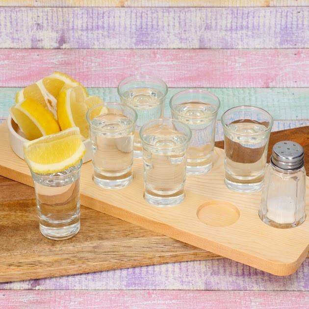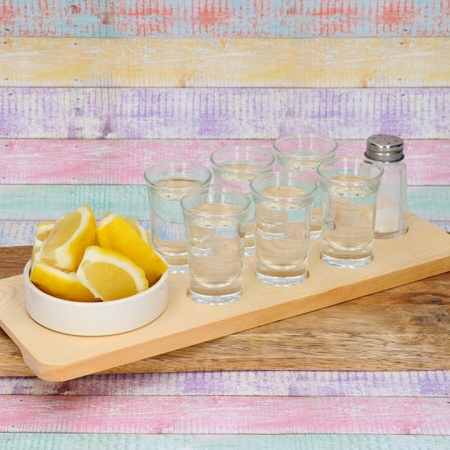 A szett tartalma: egy fa tálca melyen helyet kap hat darab felespohár, egy kis tálka a citromnak és egy sószóró is a sónak!