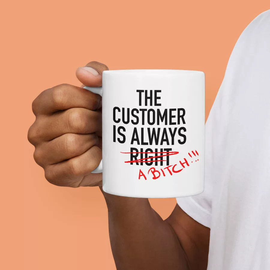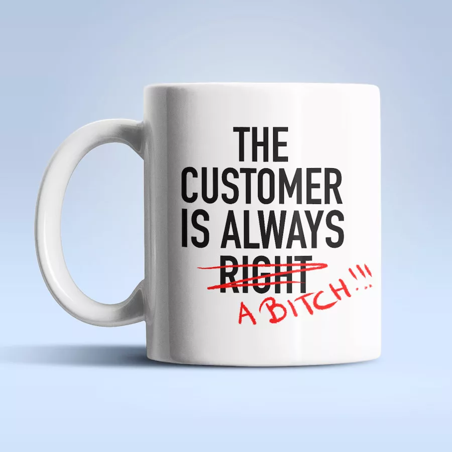 The Costumer is Always Right fehér bögre.Bemutatjuk nektek a saját gyártású bögréinket!Rengeteg egyedi minta közül választhatod ki azt, amelyik a legjobban illik hozzád, vagy ahhoz a személyhez, akit meg szeretnél ajándékozni!De tényleg! Annyira sok ötletünk van, hogy bátran állítjuk azt, hogy biztosan megtalálod a tökéletes képpel és szöveggel ellátott bögrét!A kerámia bögrék 300 ml űrtartalommal rendelkeznek, mosogatógépben is moshatók, ráadásul mikrózhatók is! Sőt az egyik legjobb dolog bennük az, hogy két oldali nyomattal láttuk el őket, így a bögre mindkét oldalán láthatod majd a mintát!Csak tudj majd választani közülük! De ér egyszerre többfélére is beruházni! Hisz tudjuk jól, hogy bögréből sosem elég!Minőségi kivitelezés, dizájnos megjelenés jellemezi az összes egyedi tárgyunkat!Űrtartalom: 300 mlAnyag: KerámiaMosogatógépben moshatóMikrózhatóKét oldali nyomat. A nyomat a bögre mindkét oldalán látható.