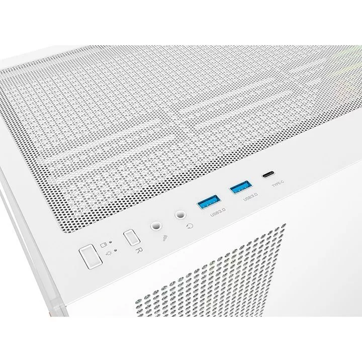 ATX, White, 2x3,5", 2x2,5", 2xUSB3.0, 1xUSB Type-C, Audio, Táp nélkül, 456x230x454mm, Ventilátor:3x12cm, Tempered glass window, RGB, Gamer