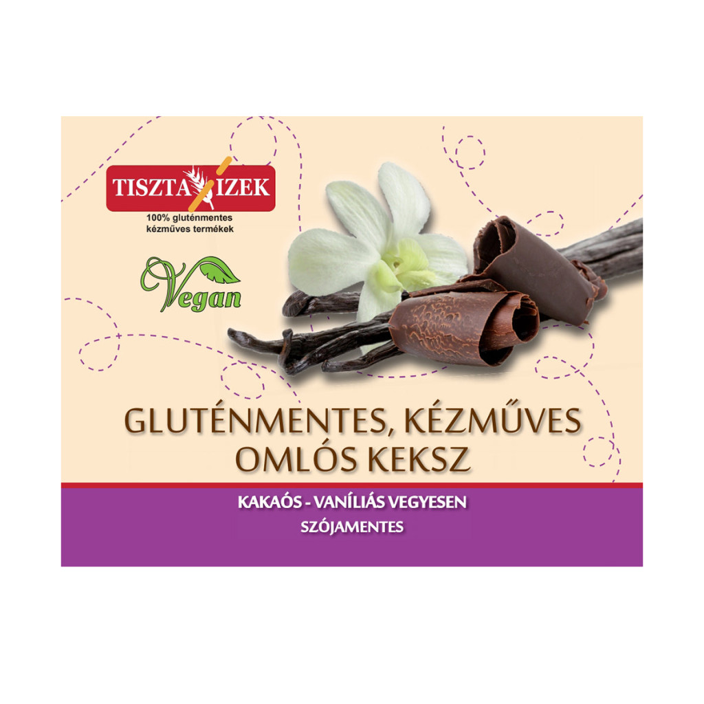 Gluténmenetes, kézműves vaníliás-kakaós omlós keksz, édesítőszerrel, egyenlő aránybanÖsszetevők: kölesliszt, növényi olaj ( kókusz ), édesítőszer ( eritrit ), tápiókaliszt, víz, zsírszegény kakaópor 3,6%, ütifűmag héj, vanilia örleményÁtlagos tápérték 100g termékben:Energia: 2100kJ/502 kcal, Zsír: 21g, amelyből telített zsírsavak: 18g, Szénhidrát: 61g, amelyből cukrok: < 0,5g, Fehérje: g, Só: 0,04g