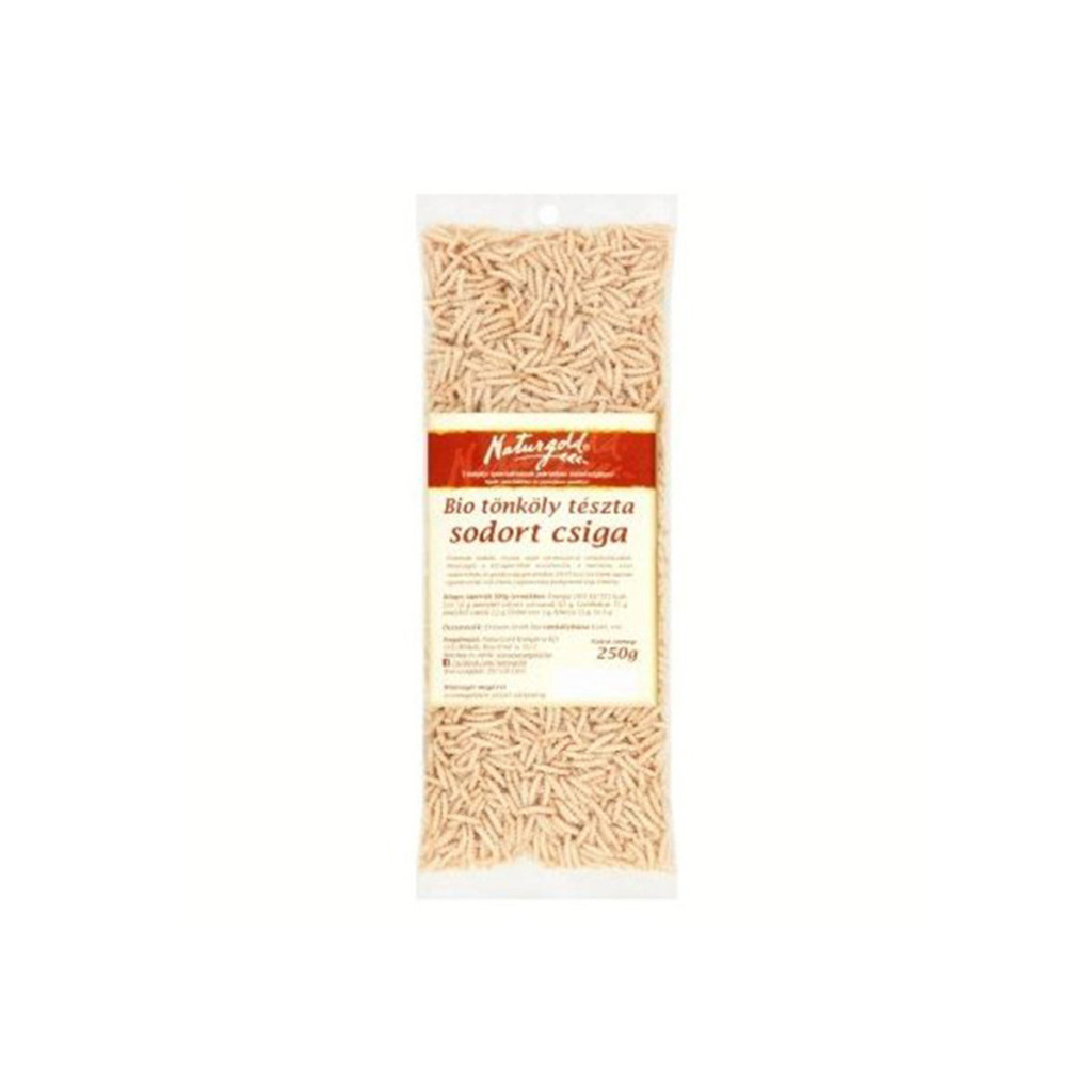 Valódi sodrott csiga ősbúzalisztből, fantasztikus ízélménnyel!Tradicionális magyar tésztakülönlegesség. Egyes vidékeken a szorgos háziasszonyok legnagyobb büszkesége és a vasárnapi leves elengedhetetlen része volt a csigatészta. Pláne, ha tönkölylisztből gyúrta a gazdasszony!A régi korok ízei, az évszázados hagyományok ihlette tésztánk az egyik büszkeségünk!Mentes: tojásmentes, vega, GMO mentes, búzaszármazék mentes, 100% bio ősgabonaÖsszetevők: bio tönkölybúzaliszt, vízEgyéb allergén információ: Glutént tartalmaz.Átlagos tápérték 100g termékben:Energia: 1503Kj/355kcalZsír: 1,6g Amelyből telített zsírsavak: 0,3g Szénhidrát: 71g Amelyből cukrok: 2,2g Fehérje: 13g Rost: 3g Só: 0g