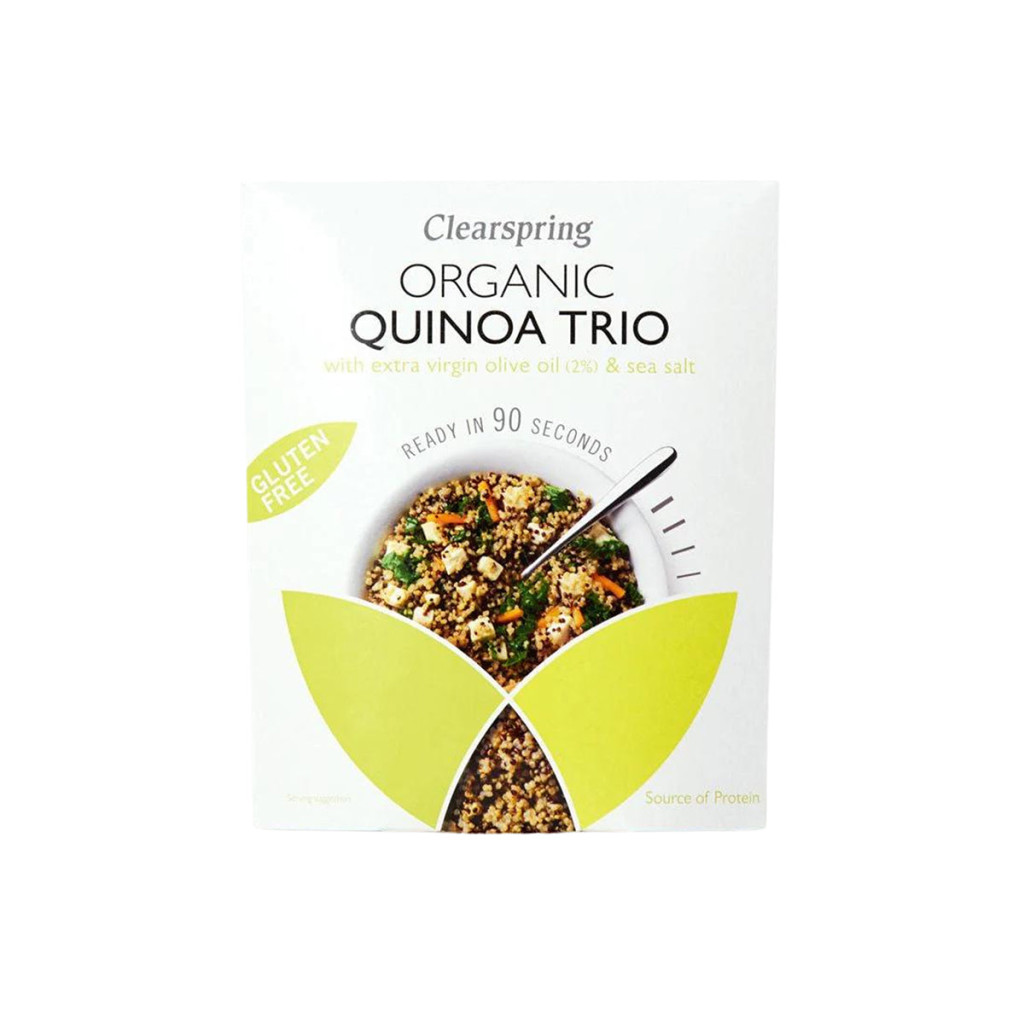 A bio fehér, vörös és a ritkább fekete quinoa színes keveréke, amely nagyon könnyen és gyorsan elkészíthető. Ezek a sokoldalú szemek praktikusan mikrohullámú sütőben használható tasakba vannak csomagolva a maximális frissesség és íz érdekében. Extra szűz olívaolajjal és finomítatlan mediterrán tengeri sóval fűszerezve, ezek a finom szemek hidegen és melegen is fogyaszthatók. Élvezze önmagukban, kevergetve, salátákban vagy tápláló köretként.Mindössze 90 másodperc alatt felmelegíthető mikrohullámú sütőben vagy főzőlapon.Hidegen is fogyasztható közvetlenül a csomagolásból - tökéletes nyári salátának!Sokoldalúan felhasználható - csak EVO olajjal és tengeri sóval fűszerezve.Színes keveréke a fehér, a piros és a szokatlanabb fekete quinoánakFehérjeforrásÖnmagában, kevergetve és salátákban is fogyasztható-2 adagot tartalmazÖsszetevők: Víz, fehér quinoa* (31%), vörös quinoa* (8,9%), fekete quinoa* (5%), extra szűz olívaolaj* (2%), tengeri só (0,9%). *organikusÁtlagos tápérték 100g termékben:Energia: 773 kj/184 kcalZsír: 4.6g Amelyből telített zsírsavak: 0,6g Szénhidrát: 29g Amelyből cukrok: 0,2g Fehérje: 5,5g Rost: 3,1g Só: 0,88g