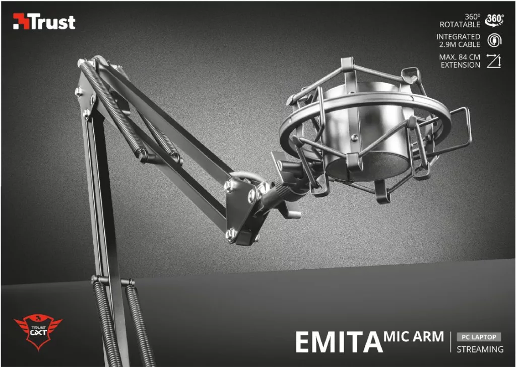 Szeretné a legjobbat kihozni a mikrofonjából? Az Emita állítható karja lehetővé teszi, hogy a mikrofonját a felvételhez legideálisabb pozícióba helyezze, hogy minden szó kristálytisztán szólaljon meg. Készüljön fel a hangjátékának frissítésére!