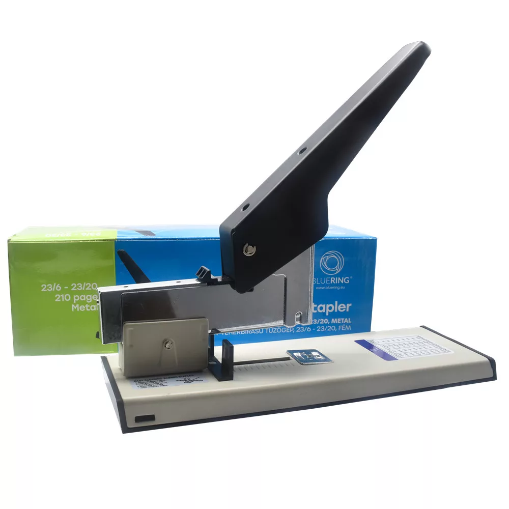 Nagy teljesítményű, karos, fém tűzőgép. Elöltöltős, állítható fűzési mélység. Az üllő forgatható, így a tűzőgép tűzési, fűzési feladatra is alkalmas. Zárható, nyitható tűzés. Csúszásgátló talp biztosítja a stabil használatot. 23/6,23/8,23/10,23/12,23/14,23/17 és 23/20 tűzőkapcsokhoz.