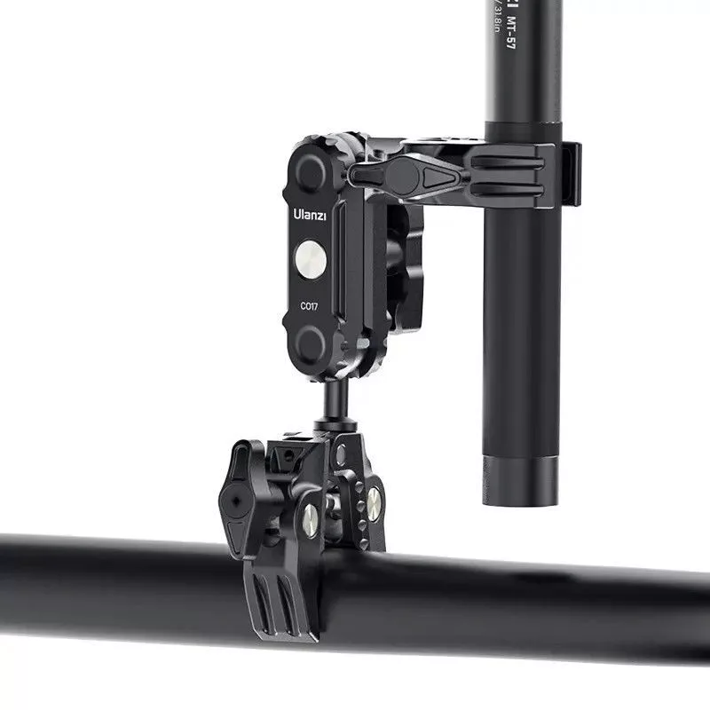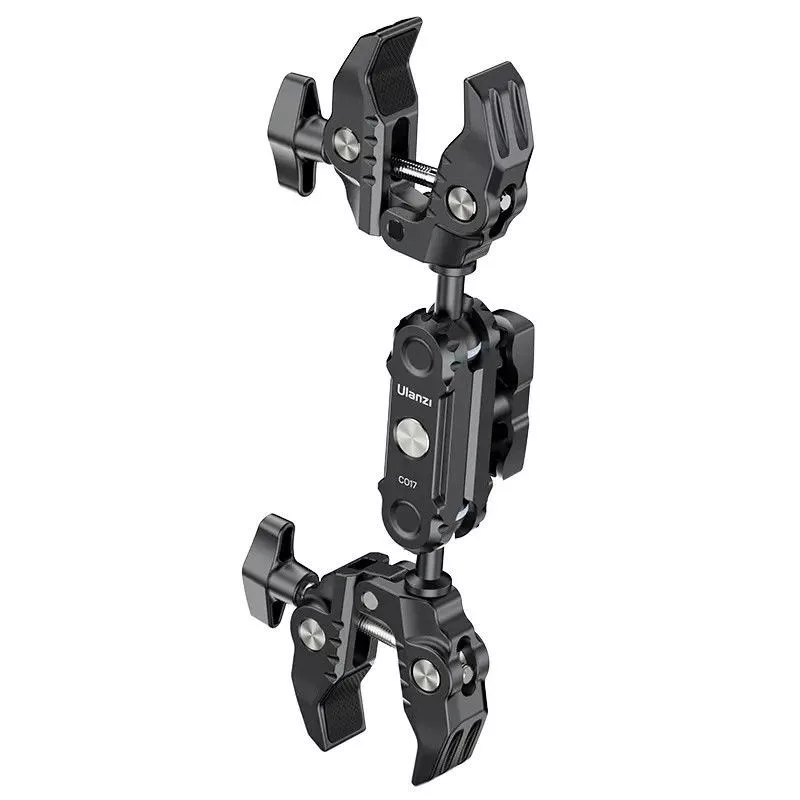 Az Ulanzi CO17 Super Clamp egy sokoldalú, dupla satu, mely könnyen csatlakoztatható motorokhoz, kerékpárokhoz, tripódokhoz, asztalokhoz és más felületekhez. A csúszásmentes tervezés biztosítja a stabilitást.