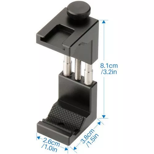Az Ulanzi ST-02 fém okostelefon állványtartóval fényképeket és videofelvételeket készíthet a telefonjával, miközben élvezi az állvány nyújtotta stabilitást és szabadságot. A tartó matt fekete eloxált alumíniumból készült, és bármilyen 2,6 "- 3,7" széles okostelefont képes befogadni. Maga a tartó 1/4 "-20 kompatibilis állványokhoz csatlakozik. A tartóban a 3M-es hátlapú gumibetét segít megvédeni a telefont a karcolásoktól és a sérülésektől.