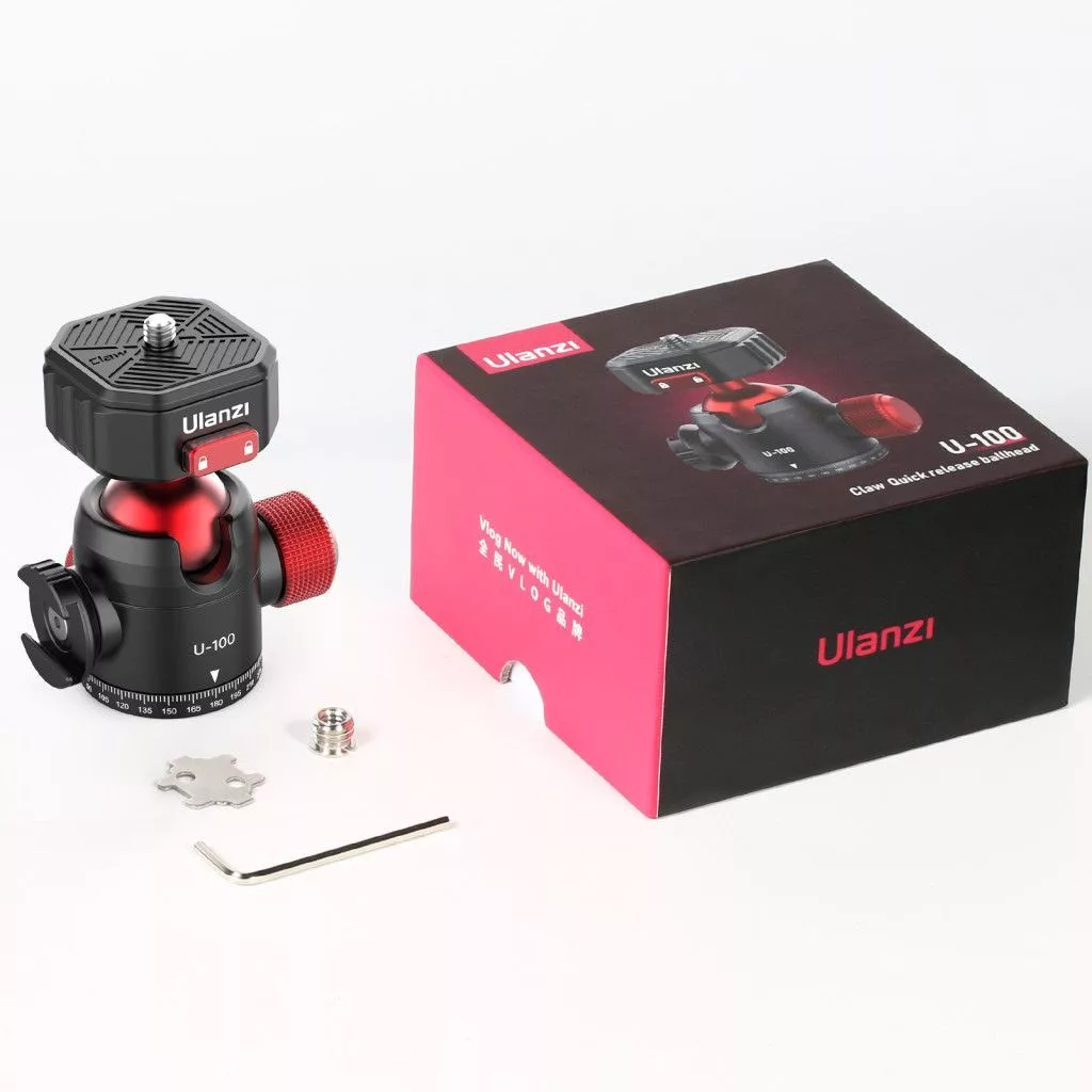 Az Ulanzi U-100 gömbfej gyorscseretalppal, vakupapucs csatlakozóval mikrofon, LED-es lámpa vagy egyéb kiegészítő hozzáadásához használható vlog- vagy webkamerás alapú felvételhez.