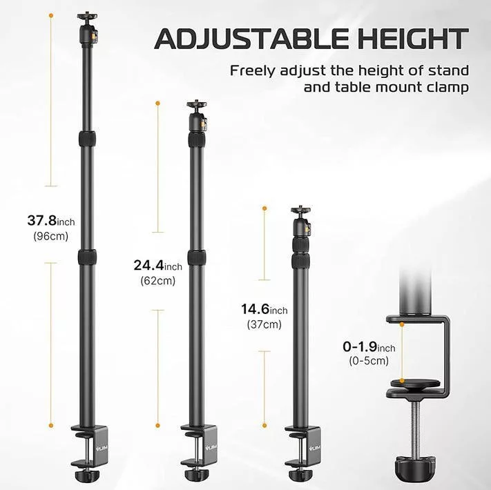 - Az asztali állvány rendszer magassága 36,83 - 95,75 centiméter között állítható, így alkalmas professzionális felvételek készítésére.