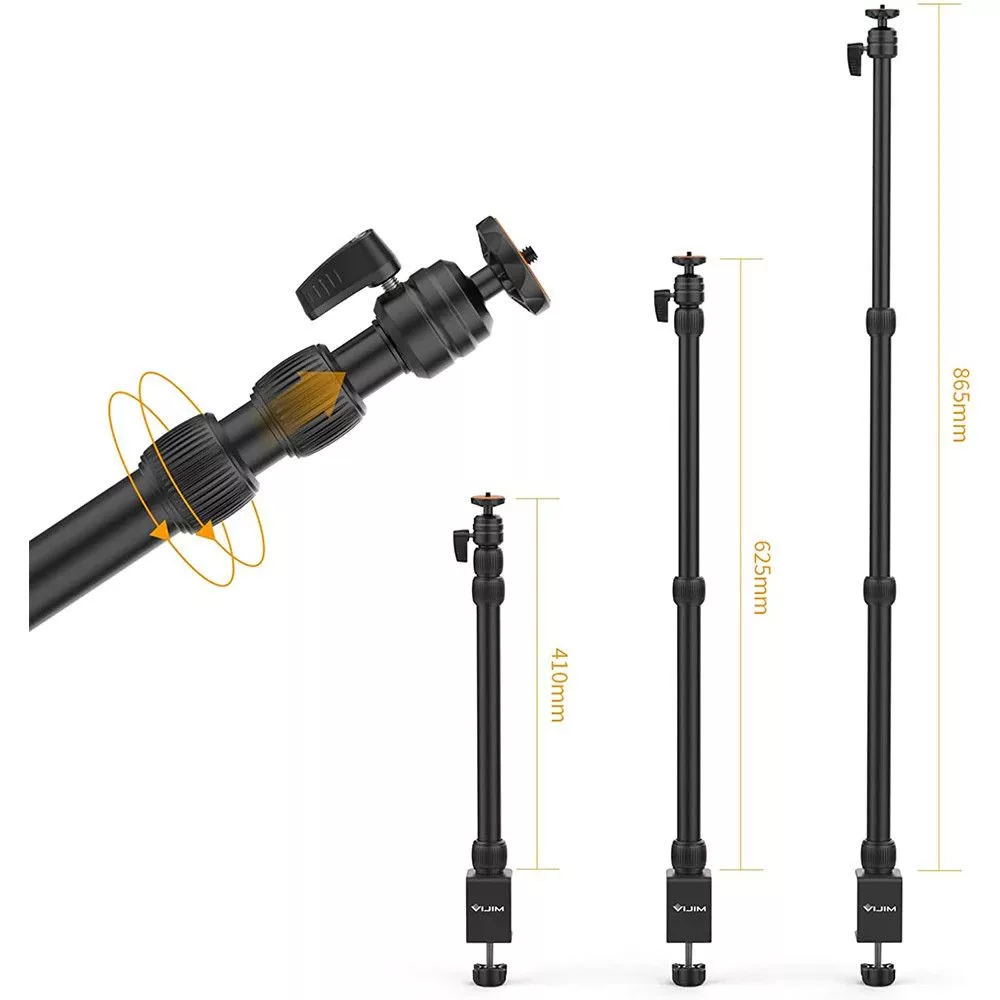 Magasságállítás: A VIJIM LS10 asztali lámpatartó 3 szakaszból álló teleszkópos oszlopokkal rendelkezik, melyek magassága állítható 41 cm-től 86 cm-ig, lehetővé téve a fentről történő fényképezést és megvilágítást.